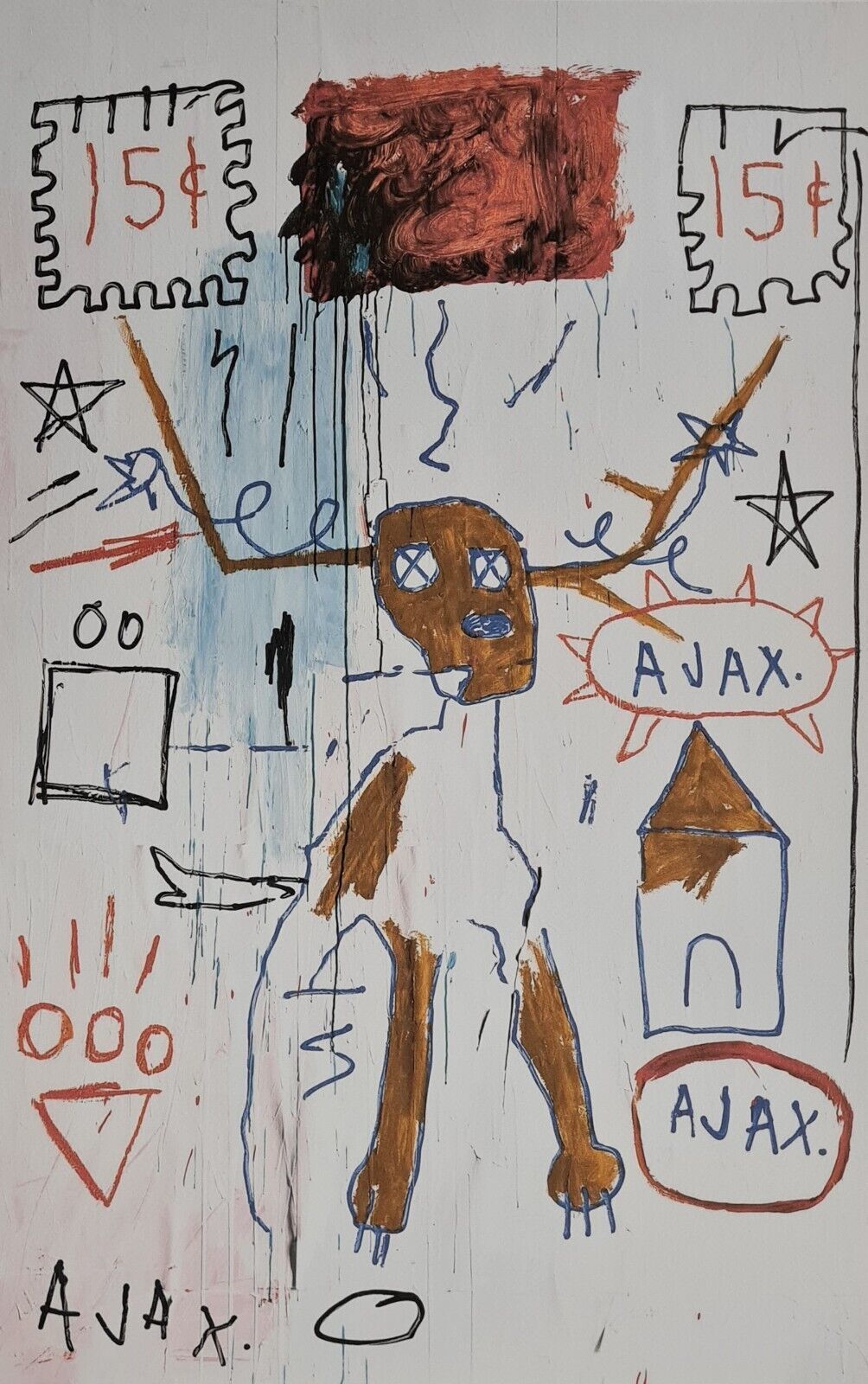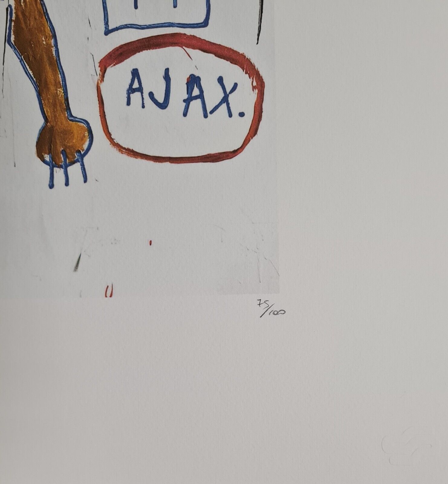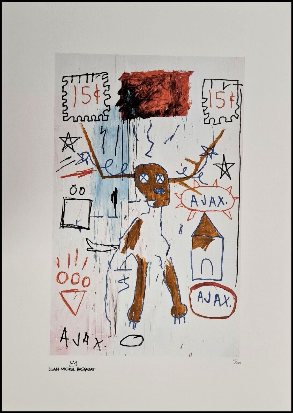 Lithographie Gleitkeim In der Platte signiert und mit der Hand nummeriert Limitierte Auflage von 100 Stück Jedes Stück ist einzeln nummeriert Prägestempel Gesamtgröße : 70 cm x 50 cm Nach dem Original von Jean-Michel Basquiat Das Blatt wird flach verschickt, nicht gerollt! Alle angebotenen Kunstprod