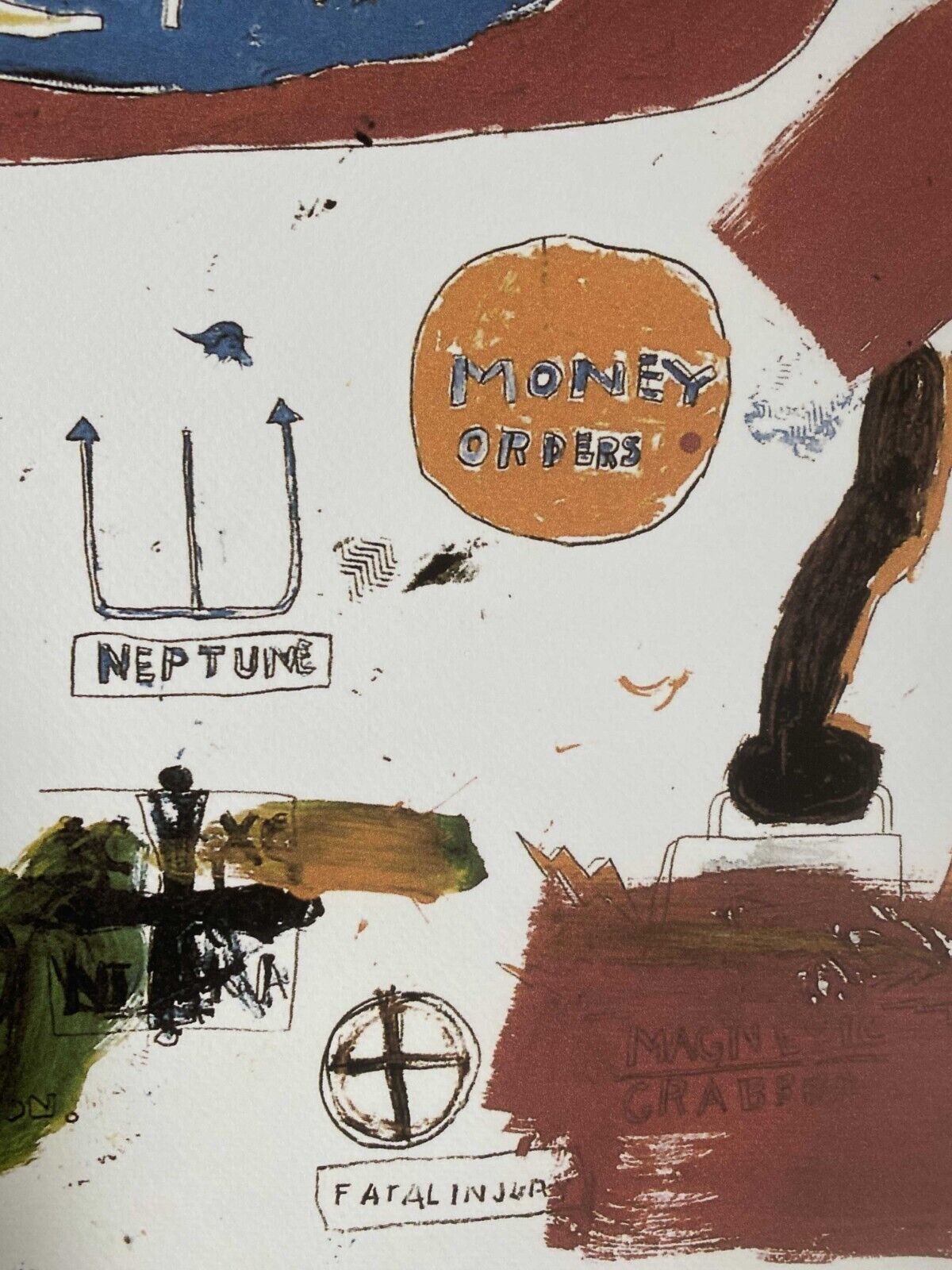 Lithographie Untitled In der Platte signiert und mit der Hand nummeriert Limitierte Auflage von 100 Stück Jedes Stück ist einzeln nummeriert Prägestempel Gesamtgröße : 70 cm x 50 cm Nach dem Original von Jean-Michel Basquiat Das Blatt wird flach verschickt, nicht gerollt! Alle angebotenen Kunstprodu