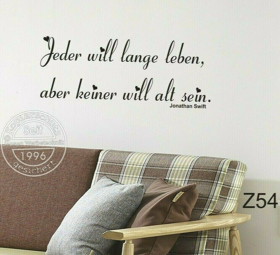 Jeder will lange leben, aber keiner... Wandtattoo Zitat 80x32cm Z54 Farbauswahl