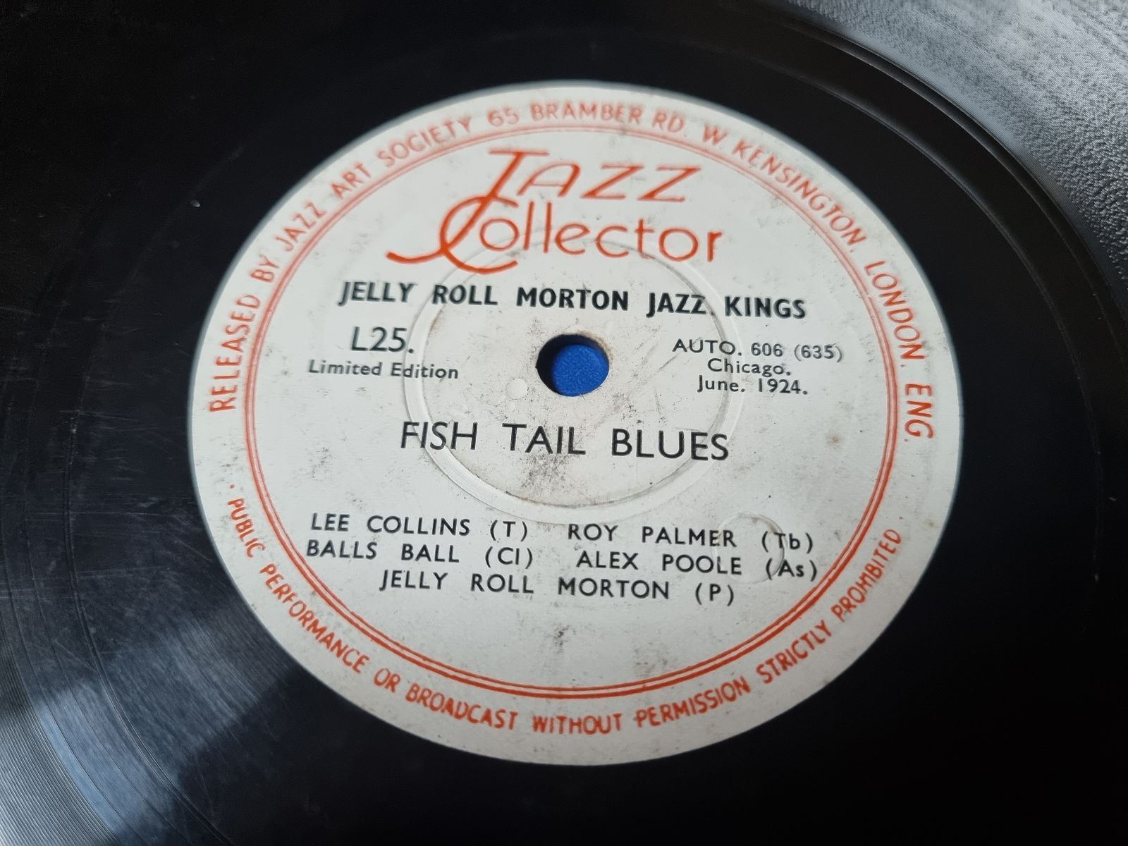 Jelly Roll Morton Jazz Kings - High society Fish tail blues Schellack Interpret: Jelly Roll Morton Jazz Kings Titel: High society Fish tail blues Format: Schellack 78 rpm Zustand Cover: LC Zustand Platte: die üblichen Gebrauchsspuren für eine Schellack 29,99 EUR + Versandkosten Ich habe die Platten