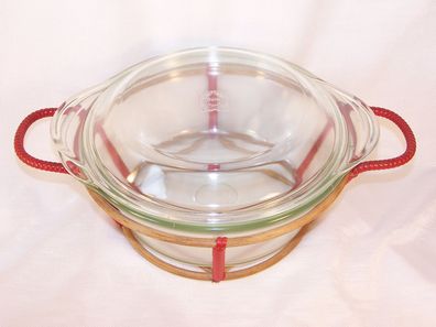 • Schott & Gen Durox Mainz Jenaer Glas Auflaufform mit original Rattan-Servierkorb