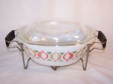 • Schott & Gen Mainz Jenaer Glas Auflaufform mit ausziehbarem Edelstahl-Untersetzer