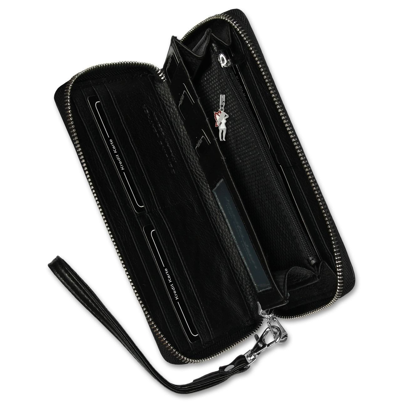 Jennifer Jones Leder Geldbörse Damen Handgelenktasche schwarz 19x10x2,5 OTJ504S