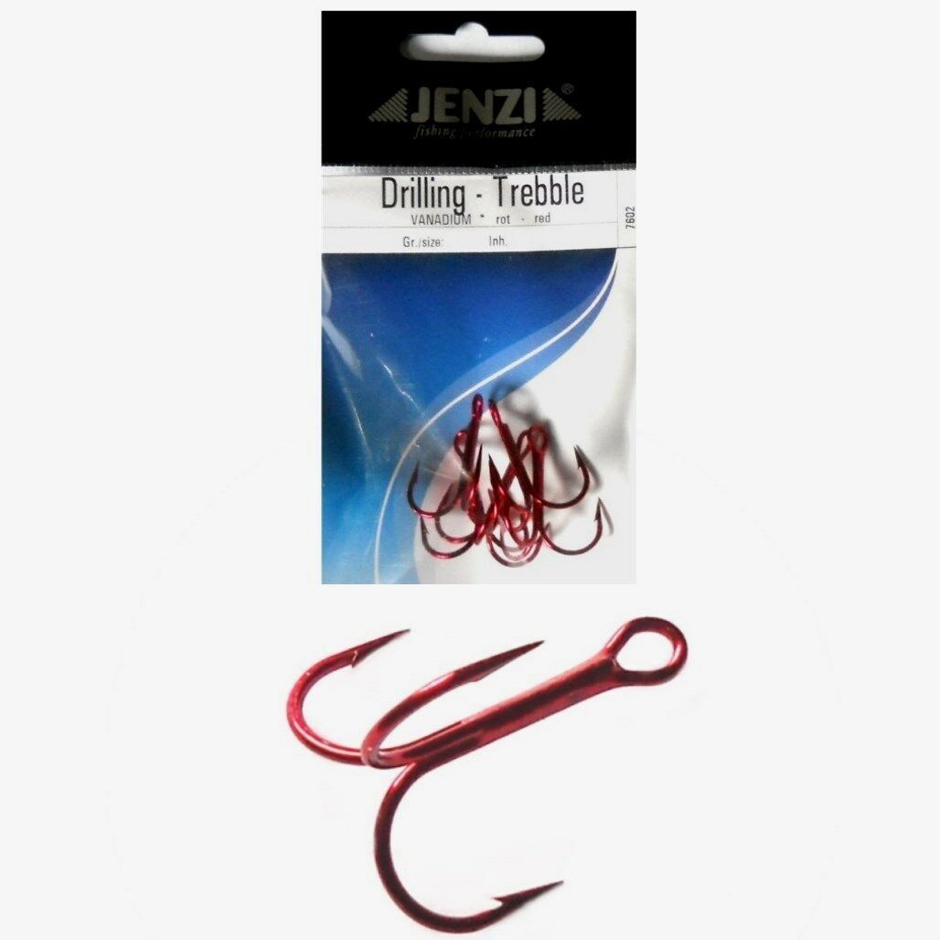 Jenzi Drilling Vanadium (Größe 8) rote Drillinge 5 Stück pro Päckchen