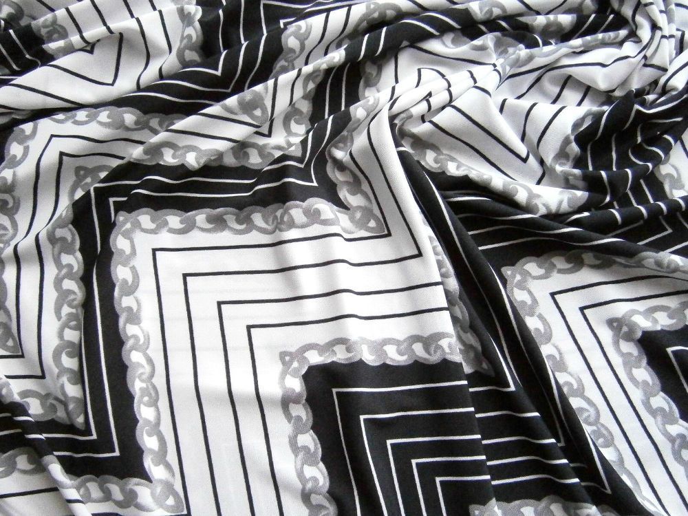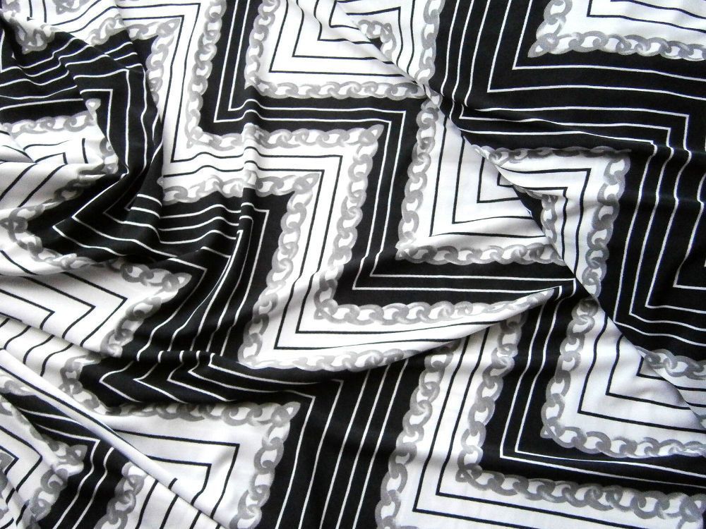 Jersey , Chevron, Meterware, Stoffe, Kleiderstoff, Weiß, Schwarz, Grau