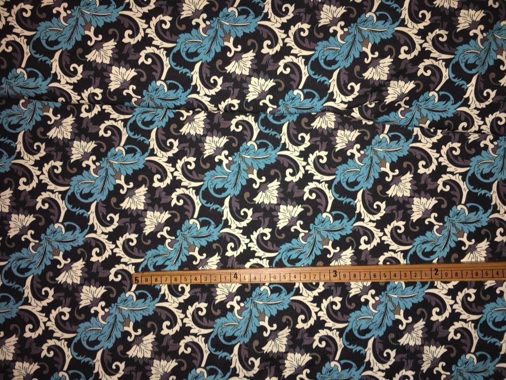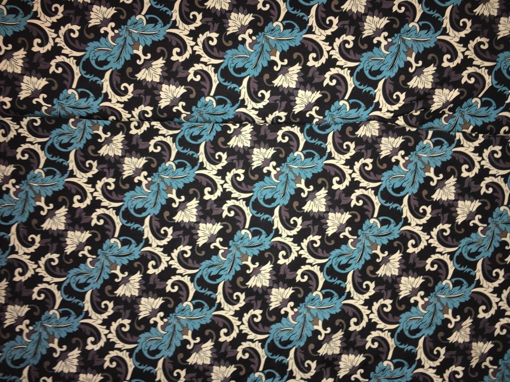 Jersey Stoff bedruckt Ornamente schwarz/ türkis/ braun/ wollweiß VE 0,25 m