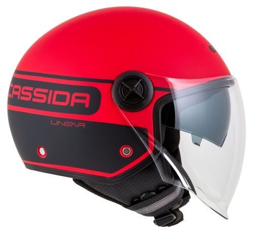Jethelm Roller Helm Motorradhelm Handy Plus Linear Cassida rot matt mit Visier