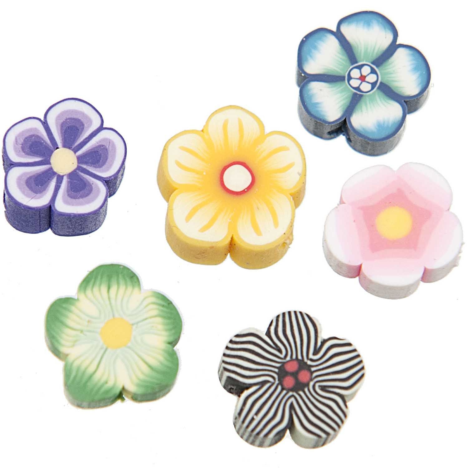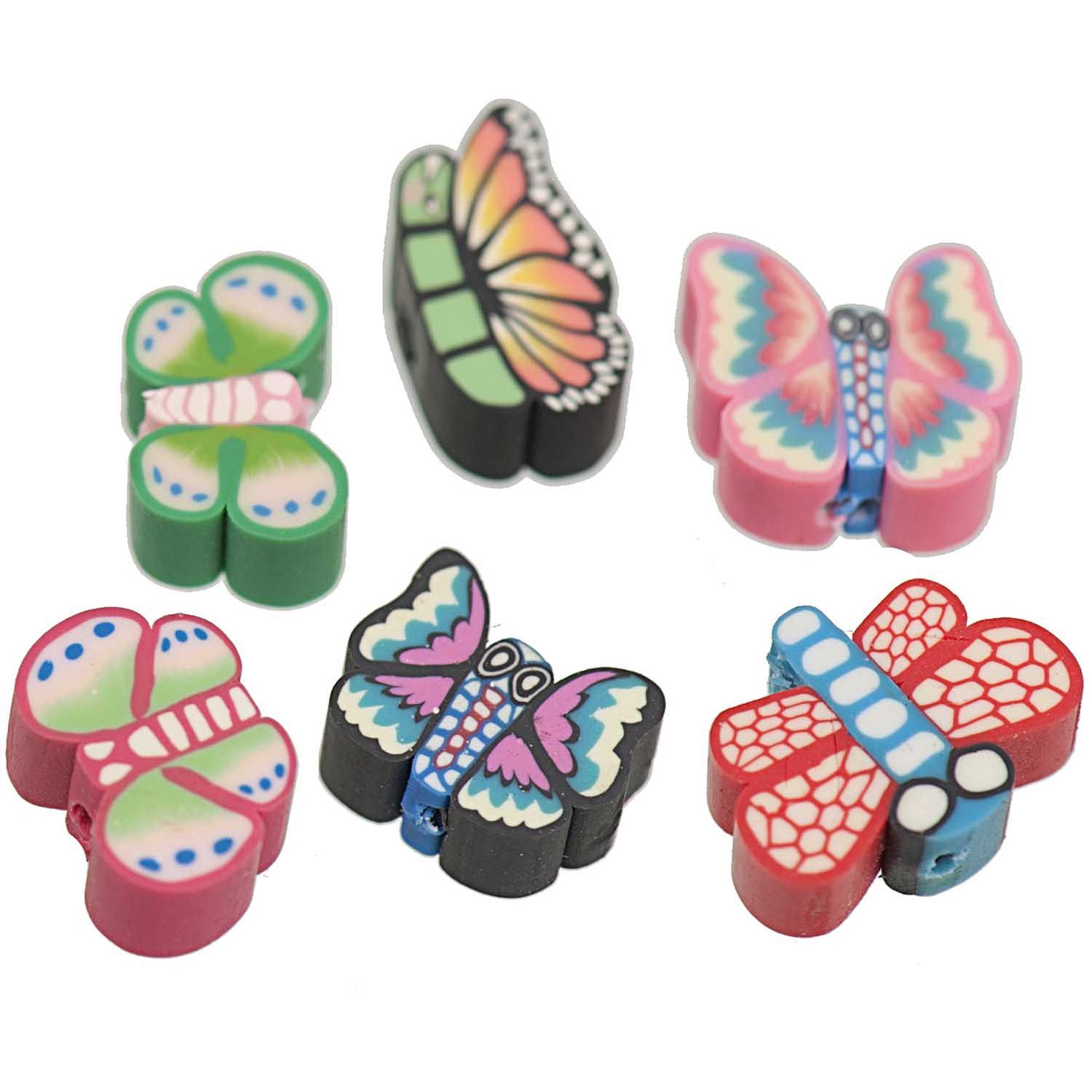 Perlen aus Kunststoff bunt gemustert Größe: 10x4 mm (Blumen) oder 10x9 mm (Schmetterlinge) Inhalt: 6 Stück je Packung