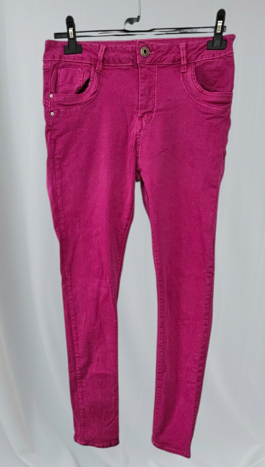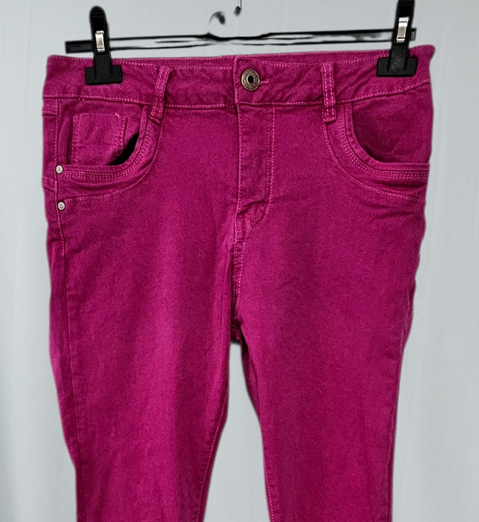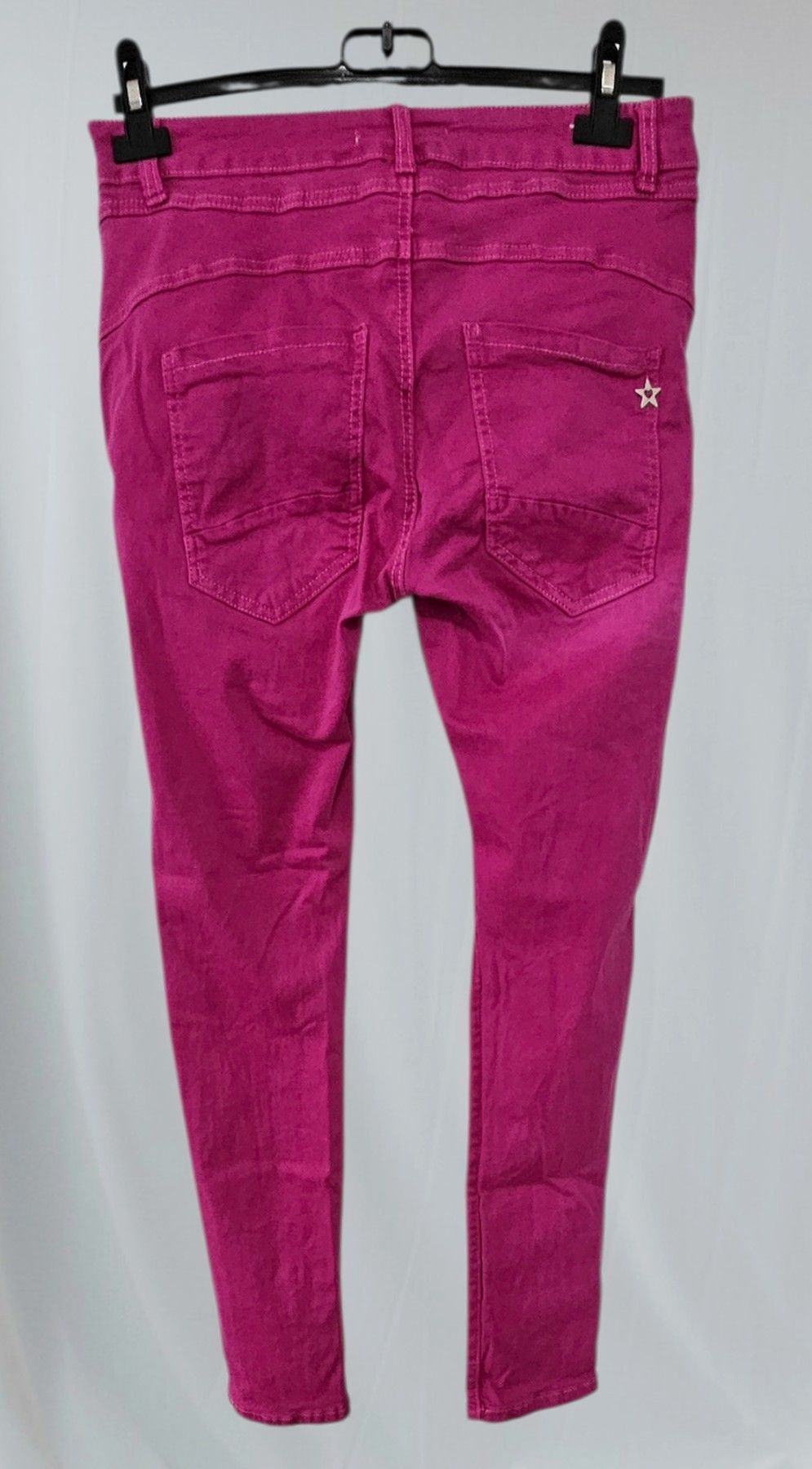 Jewelly Damen Jeans Stretch Hose mit Knopf/RV schmales Bein Taschen Pink Gr. M