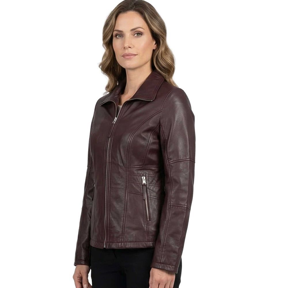 Jilani Collection - Damen Lederjacke Lammnappa burgundy