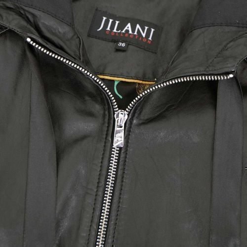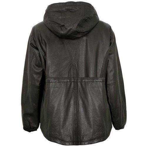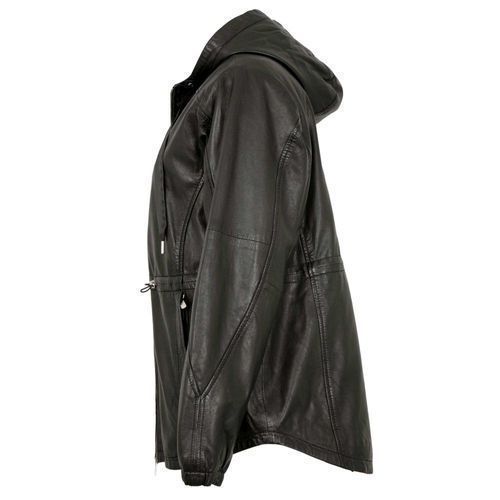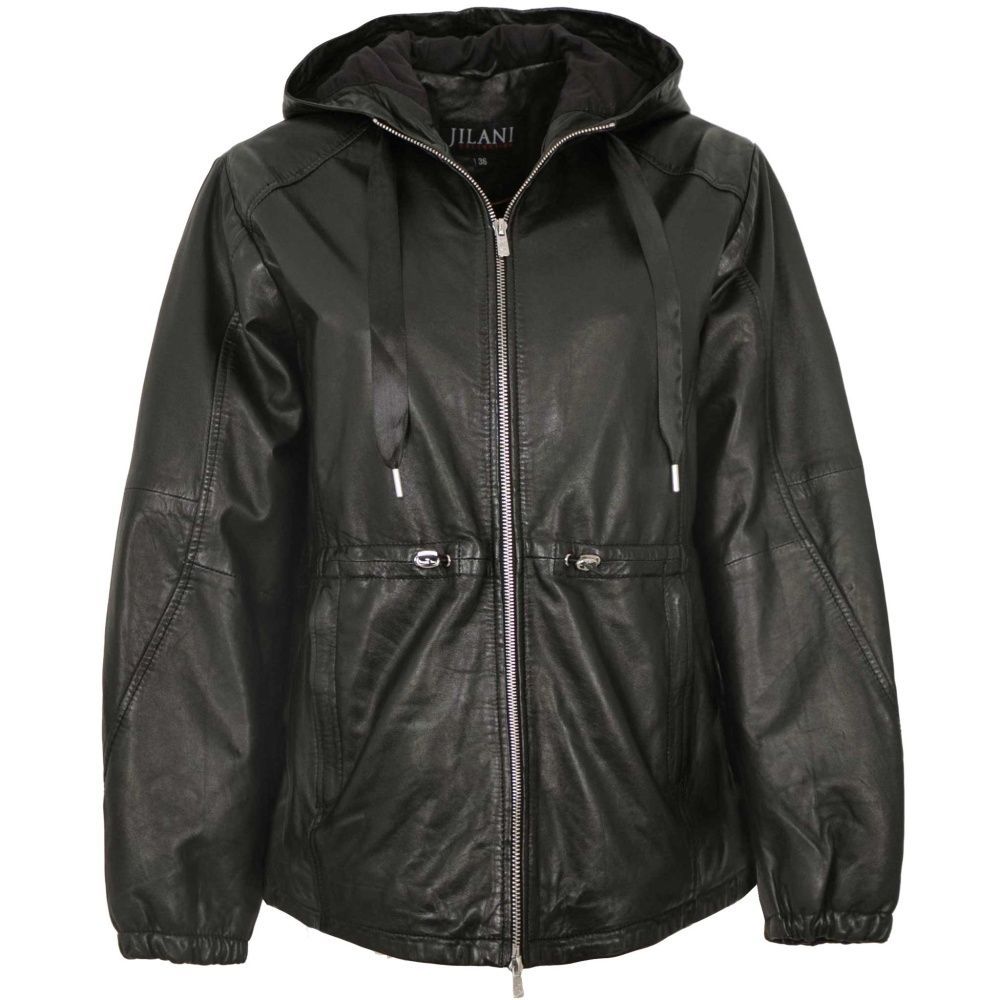 Jilani Collection - Damen Lederjacke Lammnappa Kapuze Oversize schwarz