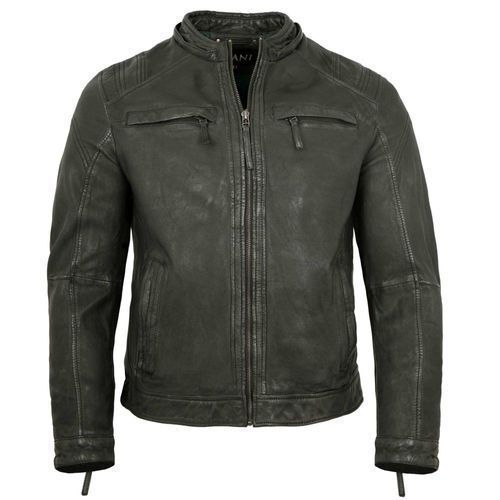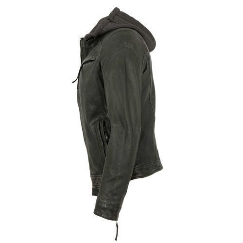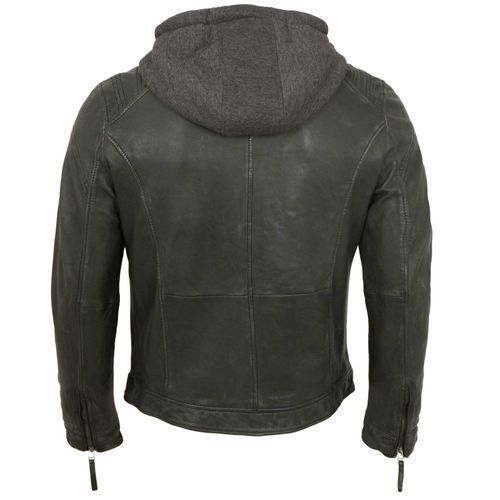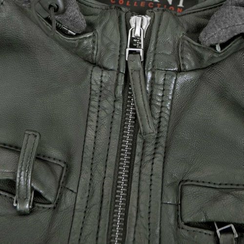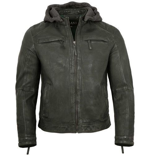 Jilani Collection - Herren Lederjacke Kapuze Lammnappa dunkelgrün
