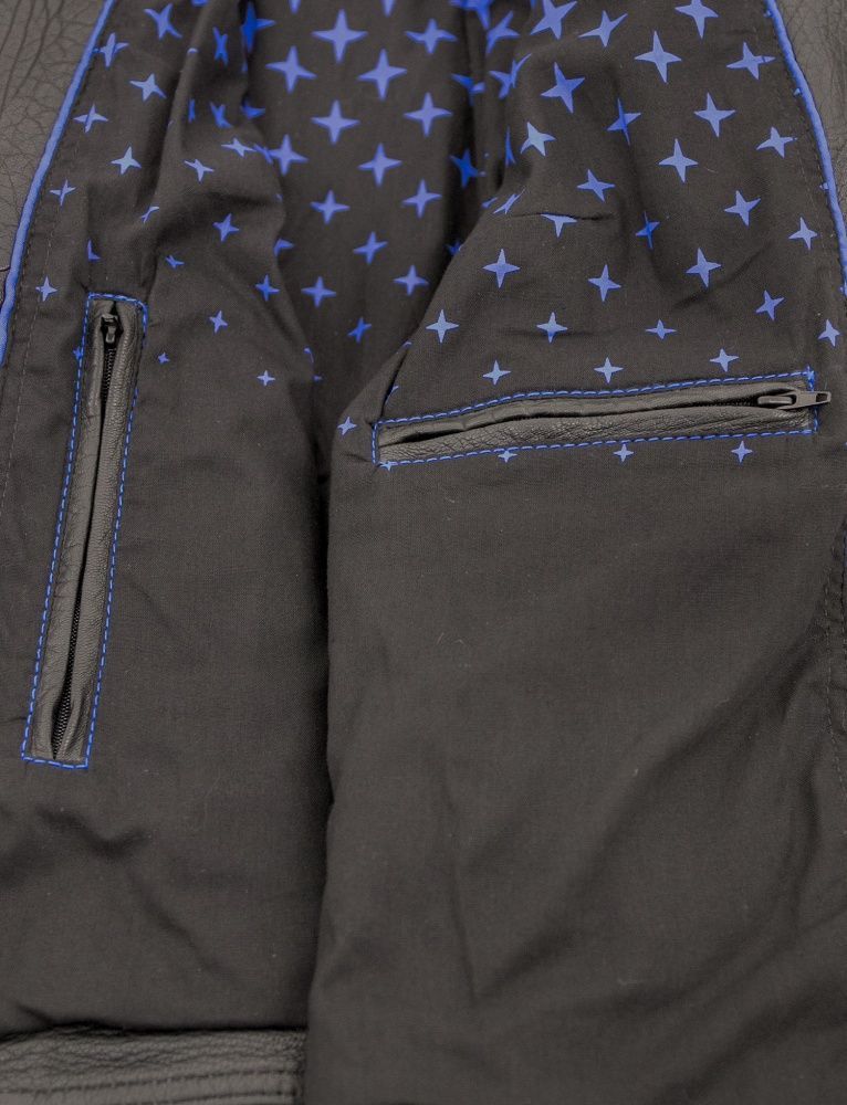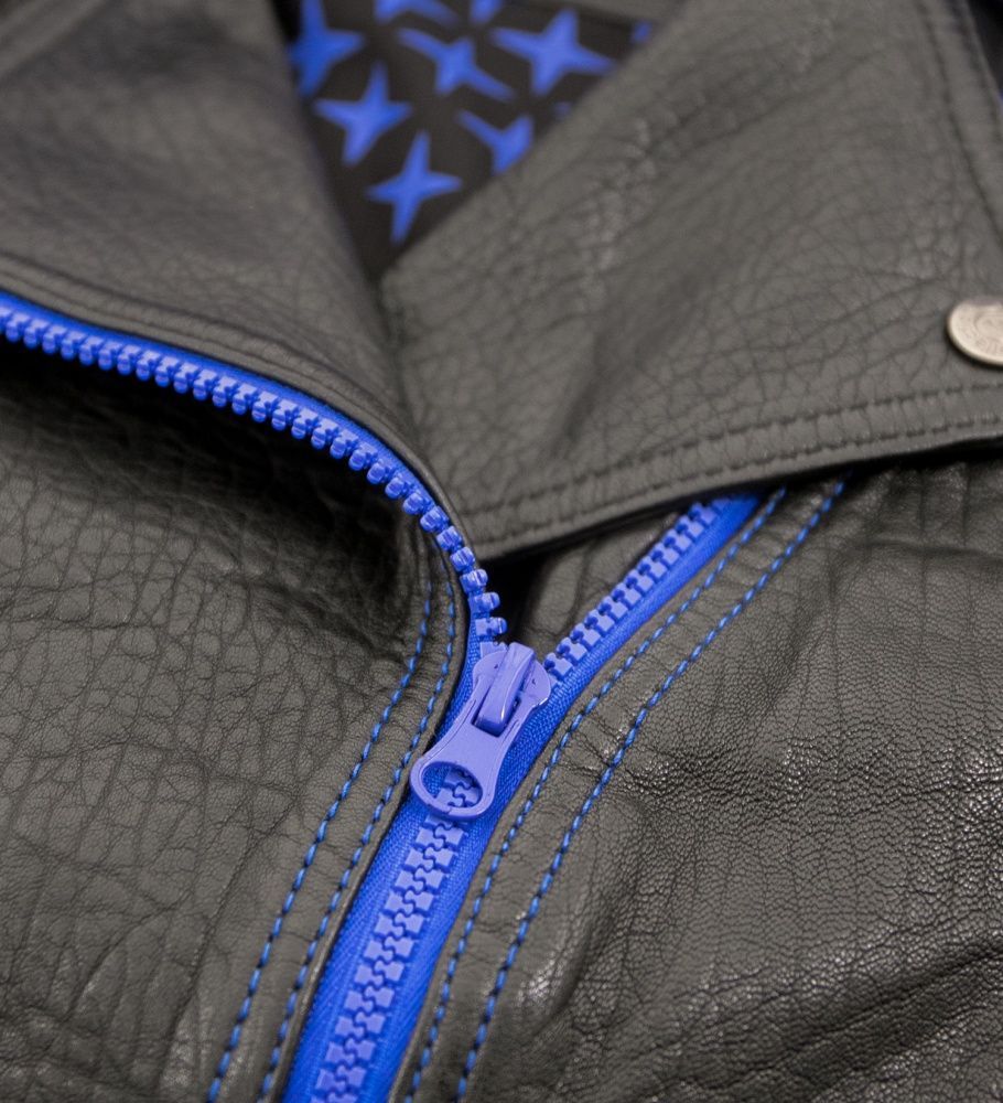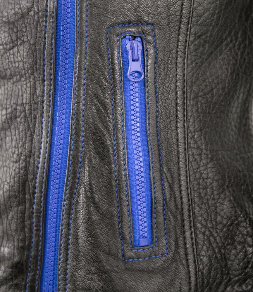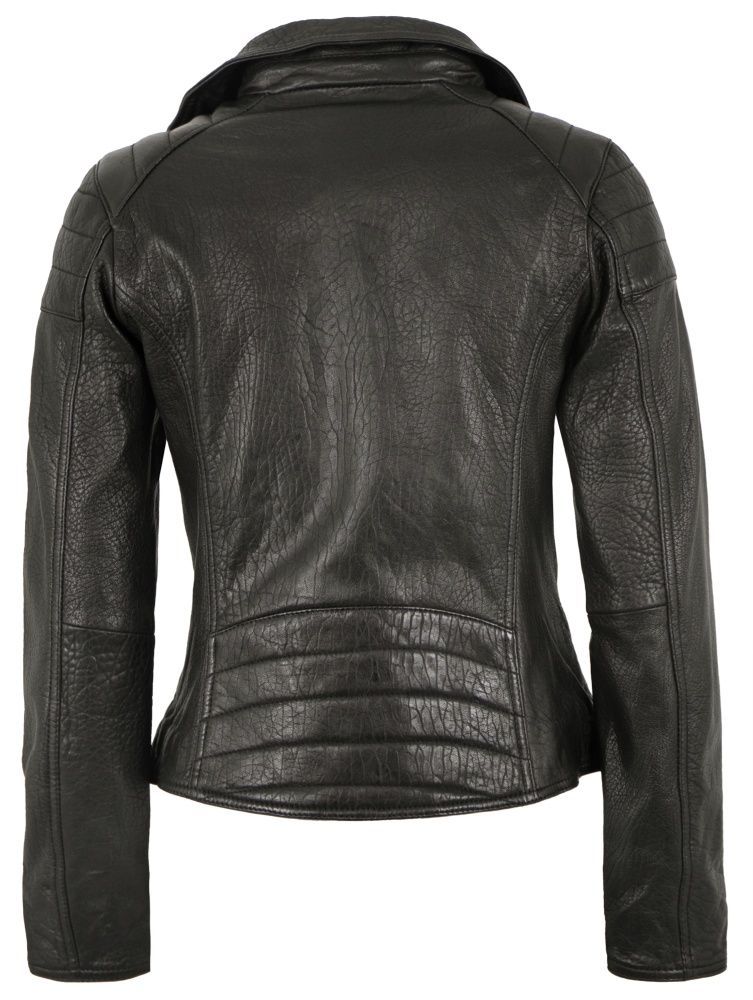 Jilani - Damen Lederjacke Bikerjacke Lammnappa schwarz / royalblau