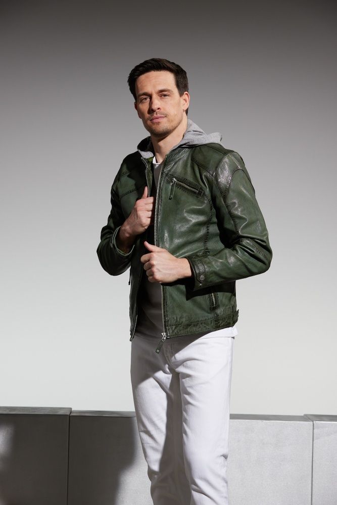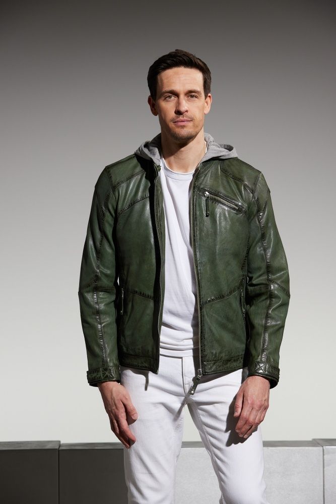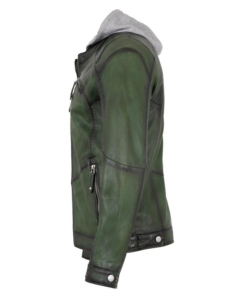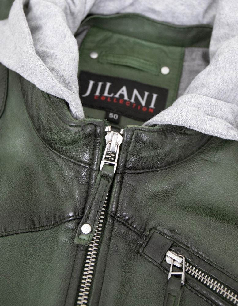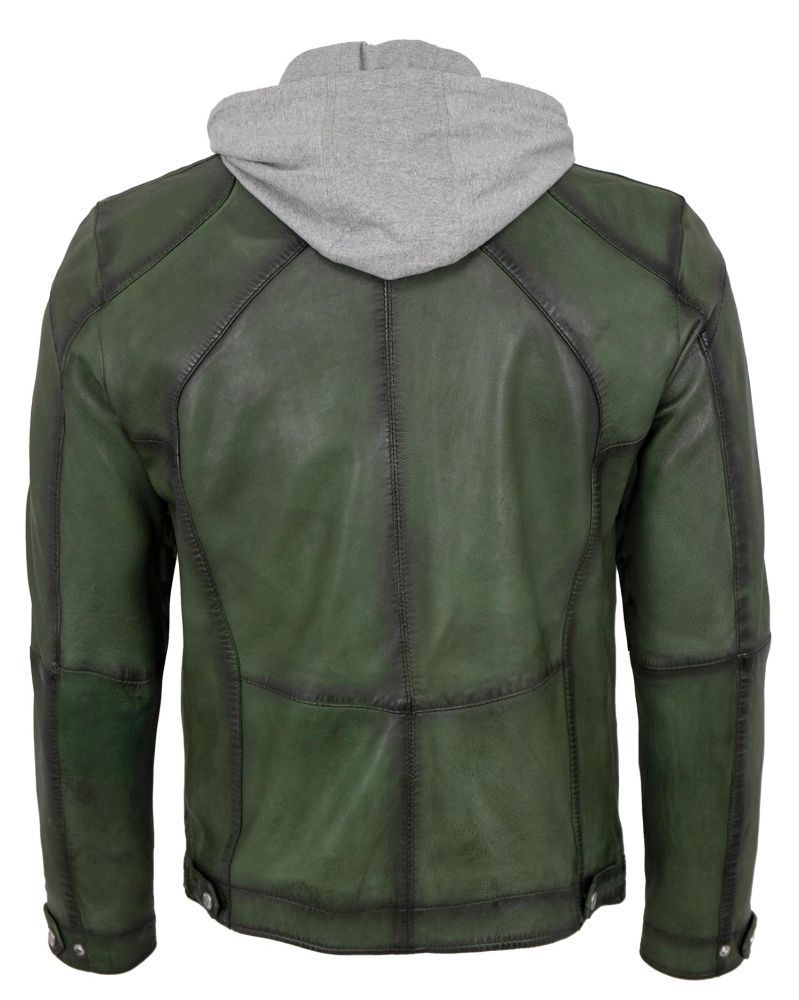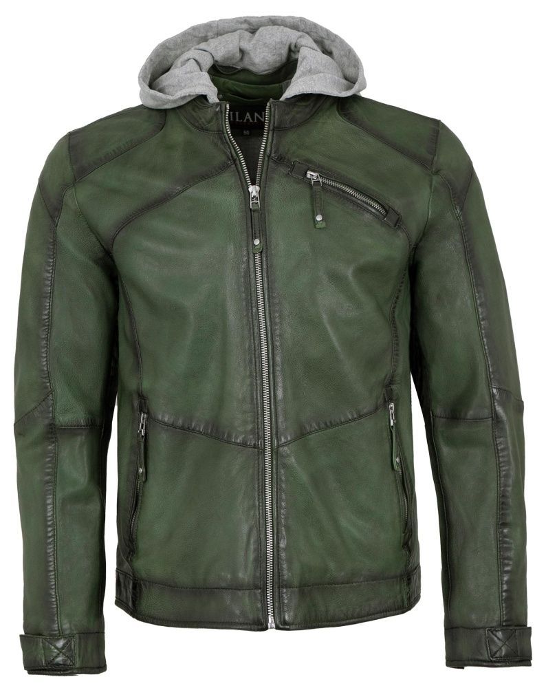 Jilani - Herren Lederjacke Kapuze Lammnappa dunkelgrün