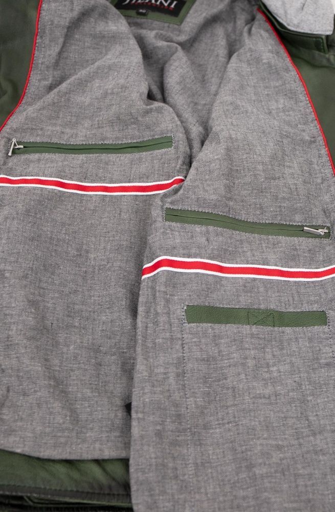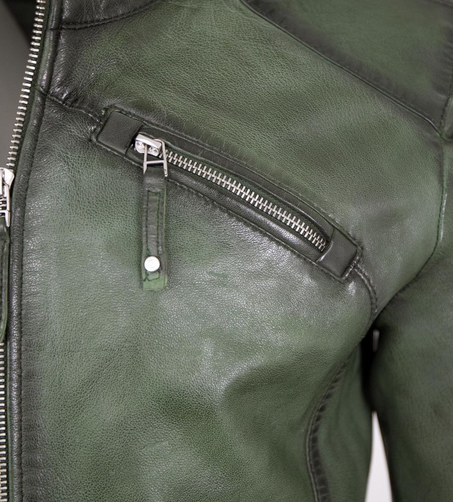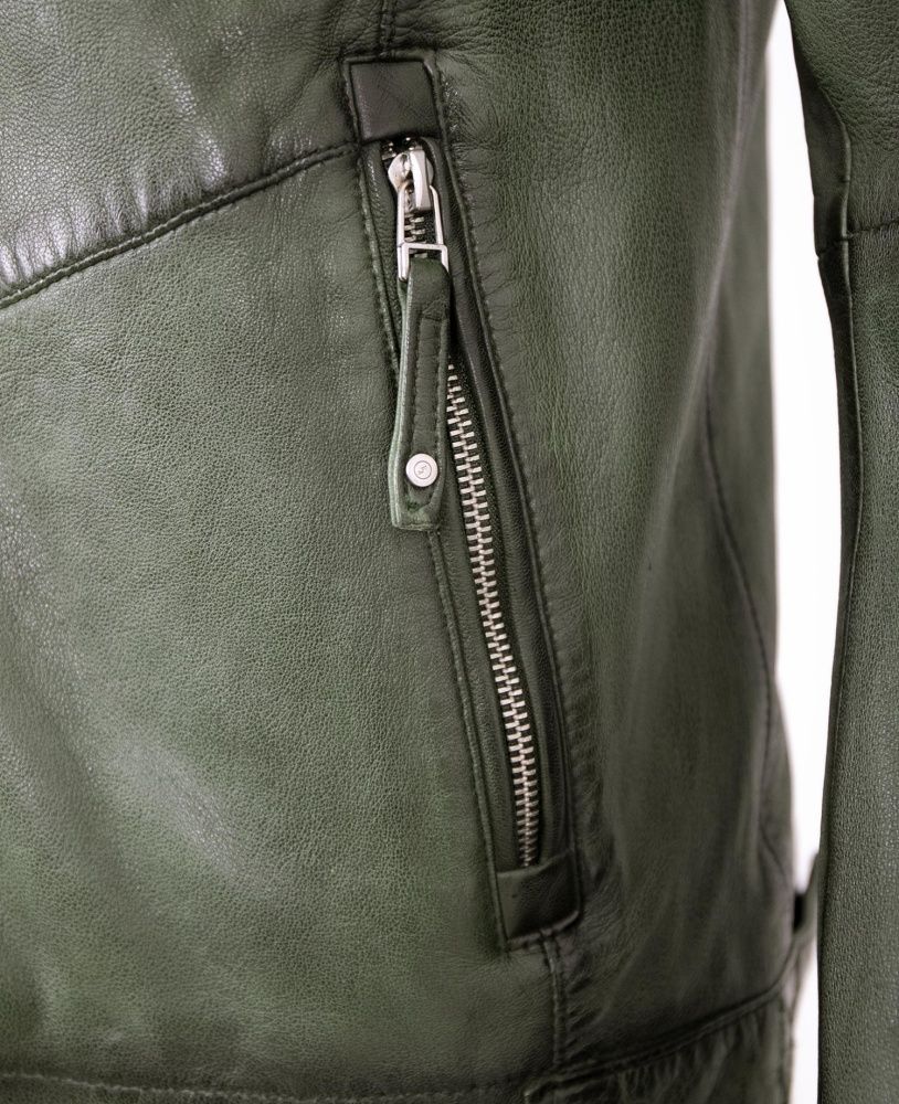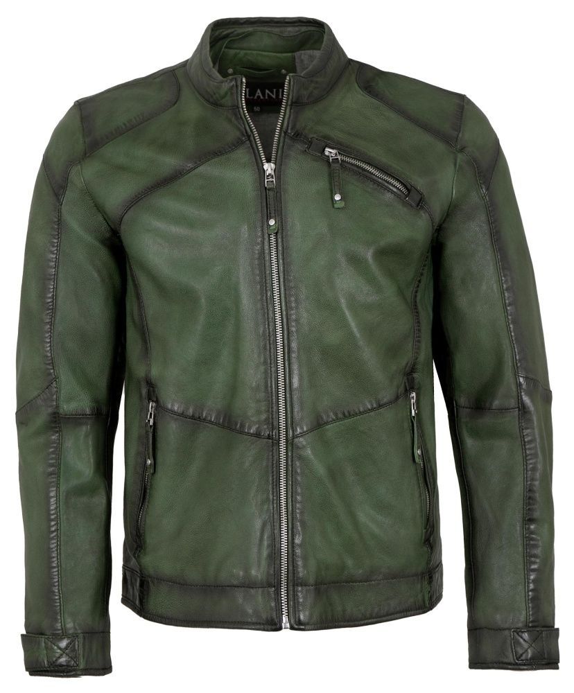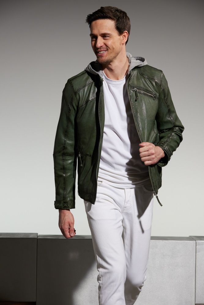 Jilani - Herren Lederjacke Kapuze Lammnappa dunkelgrün