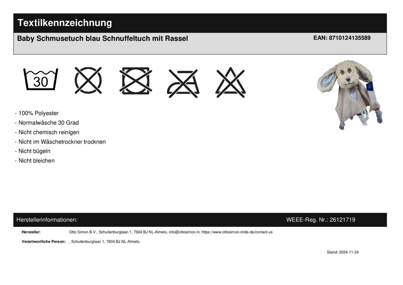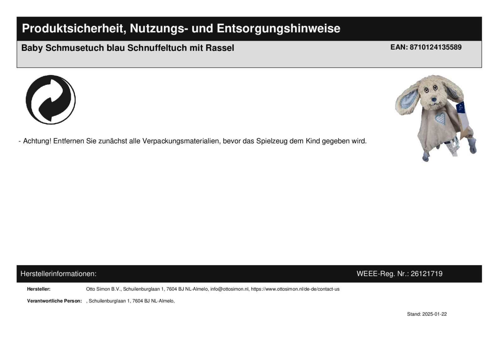 Jipy Baby Schmusetuch extraweich blau Schnuffeltuch Schmusetuch mit Rassel