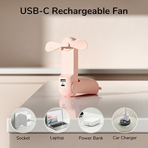 Jisulife 3 in 1 Handventilator USB Wiederaufladbar Taschenventilator Klein Rosa