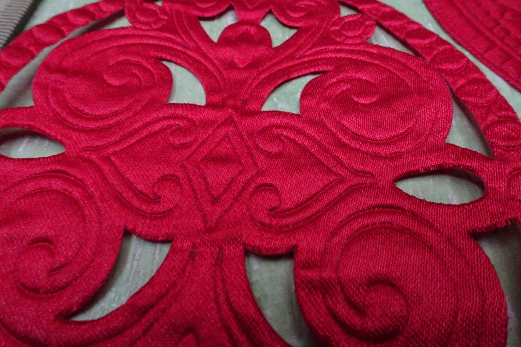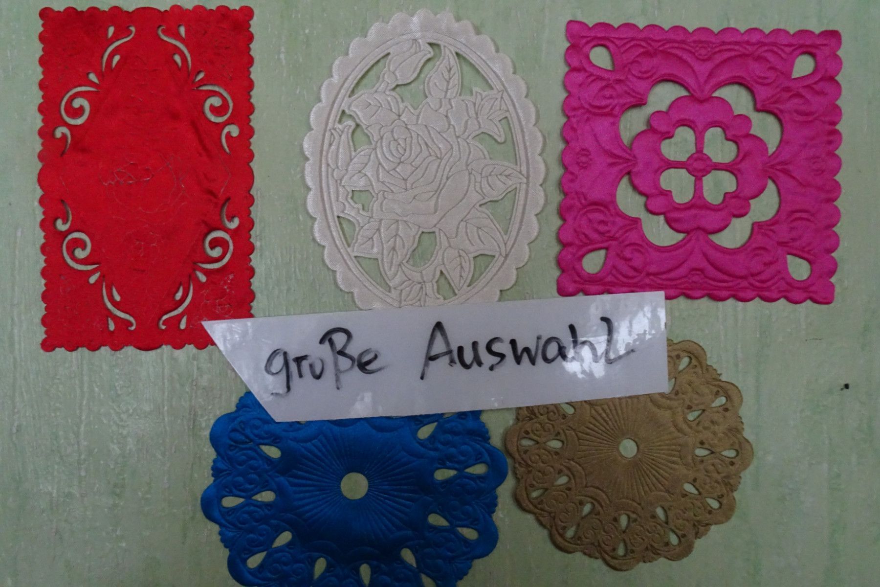 Jittenmeier Barock-Satin-Stoff-Zierdeckchen Cardlayer Untersetzer mit Motiv bunt
