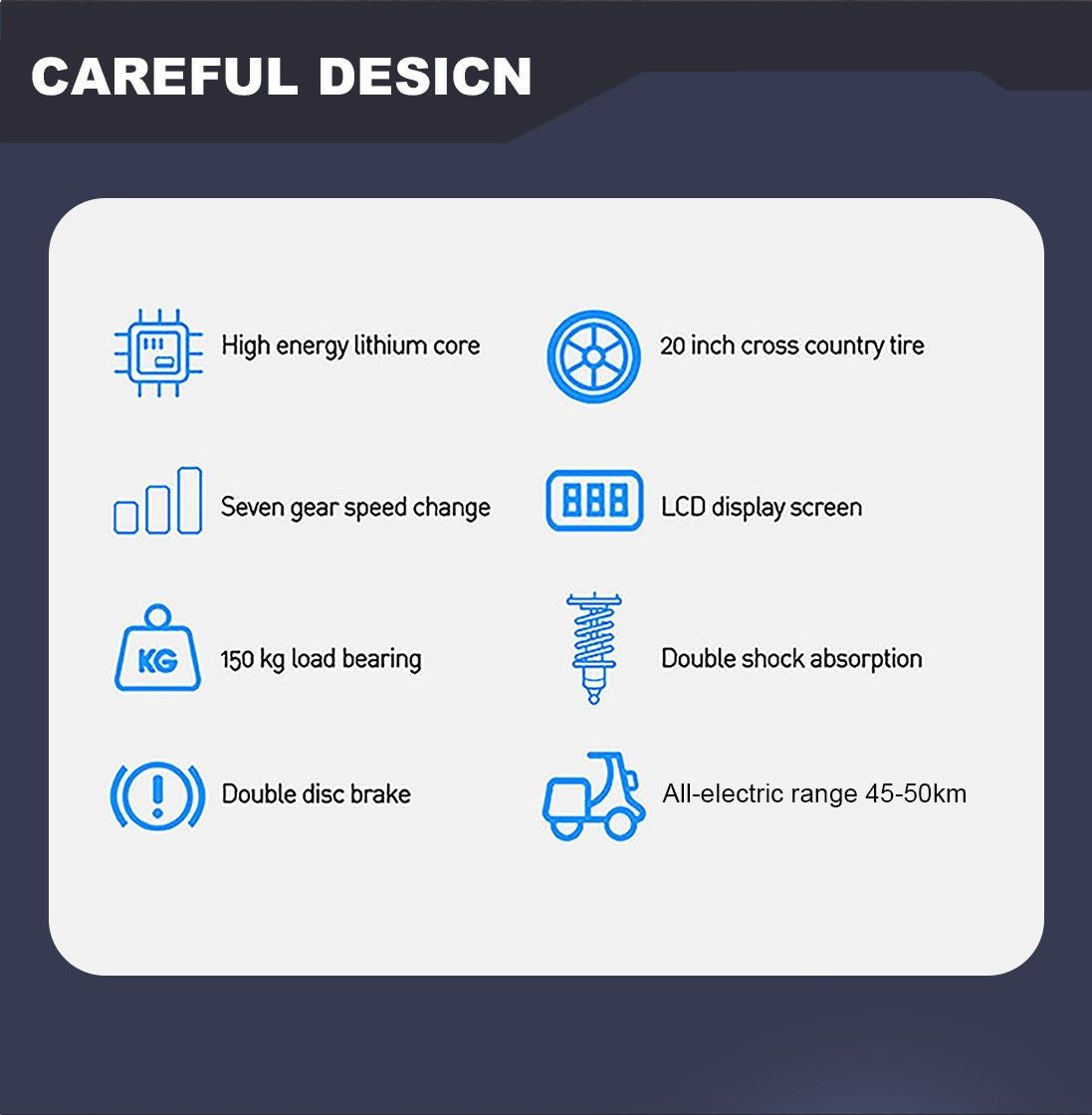 JKING E-Bike 20" mit 48V/18Ah Akku, Elektrofahrrad Motor , 7-Gang & 50 km Reichweite