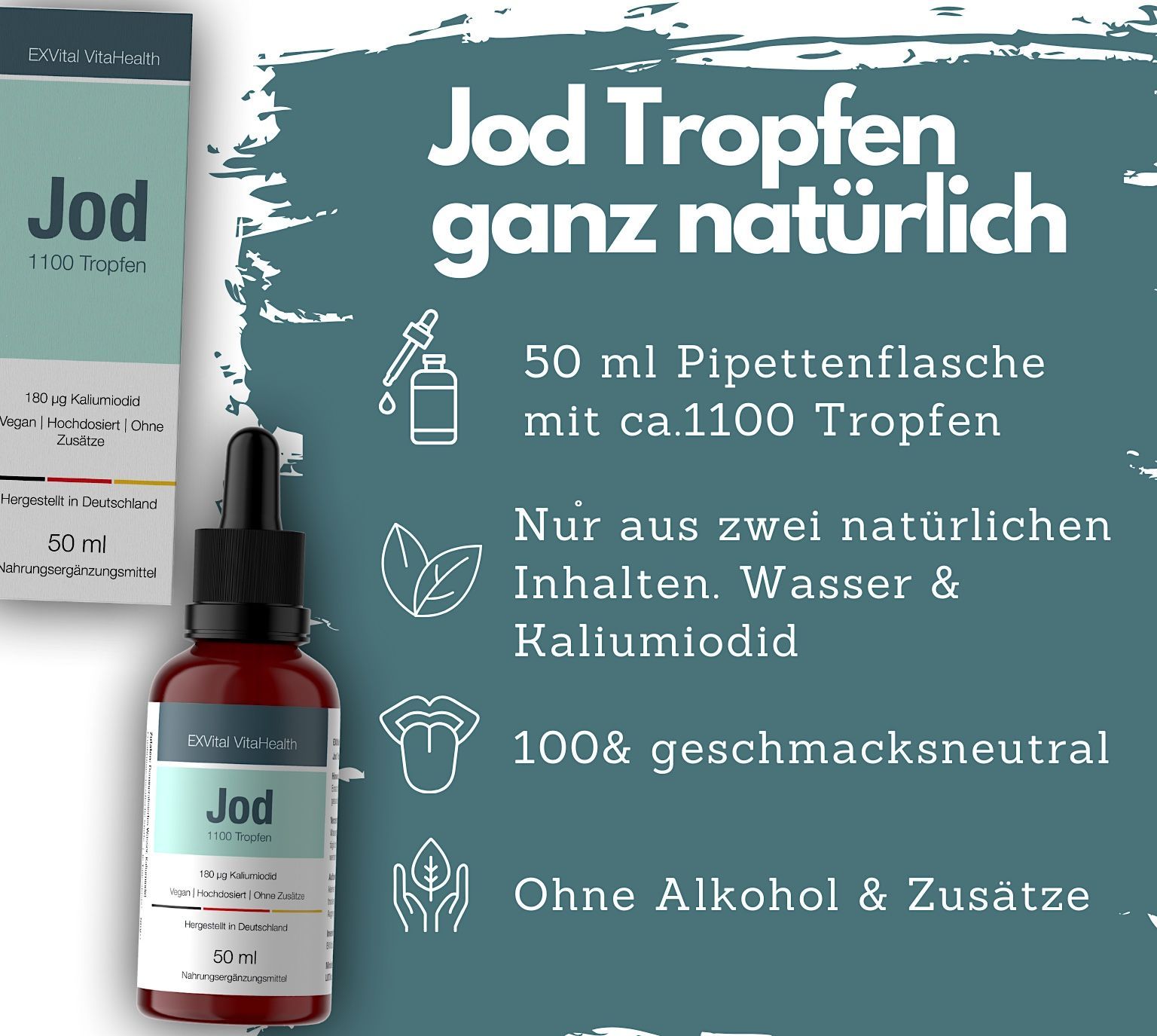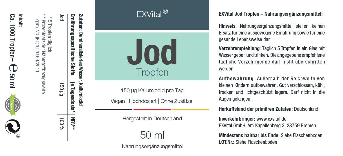 Jod Tropfen, 150 µg hochdosiertes Kaliumiodid pro Tagesdosis, flüssige Iodine