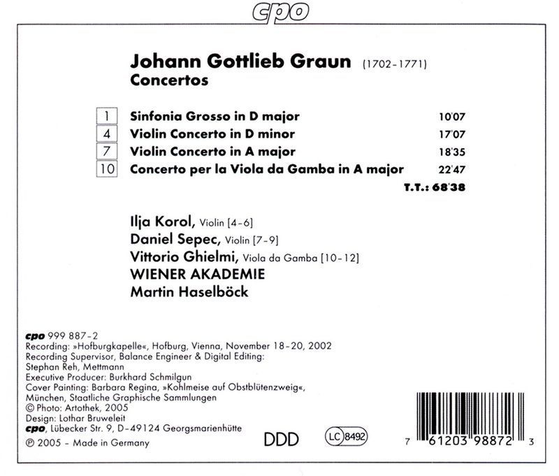 Johann Gottlieb Graun (1703-1771): Concerti & Sinfonie - CPO 0