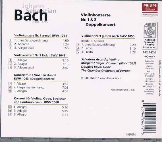 Johann Sebastian Bach - Violinkonzert Nr.1 & 2 - CD