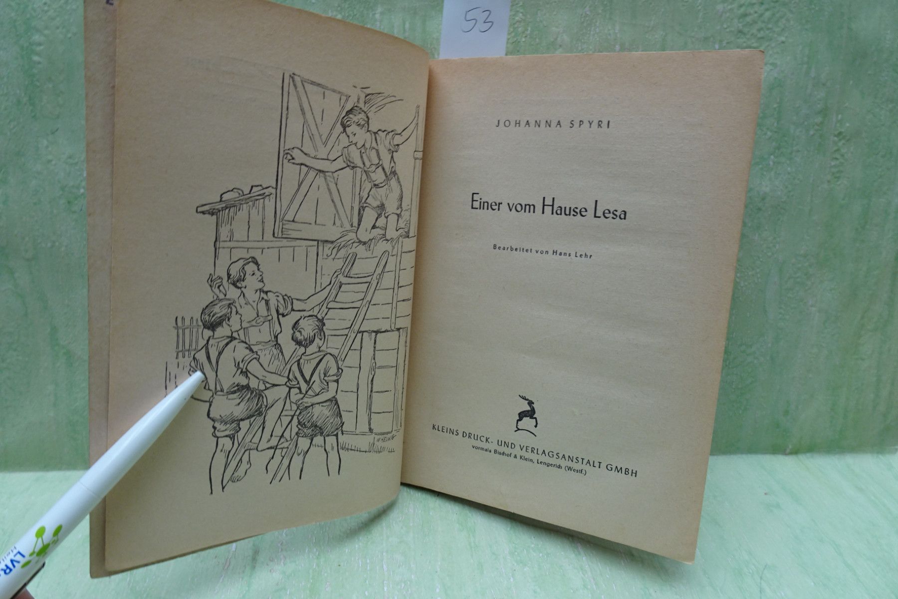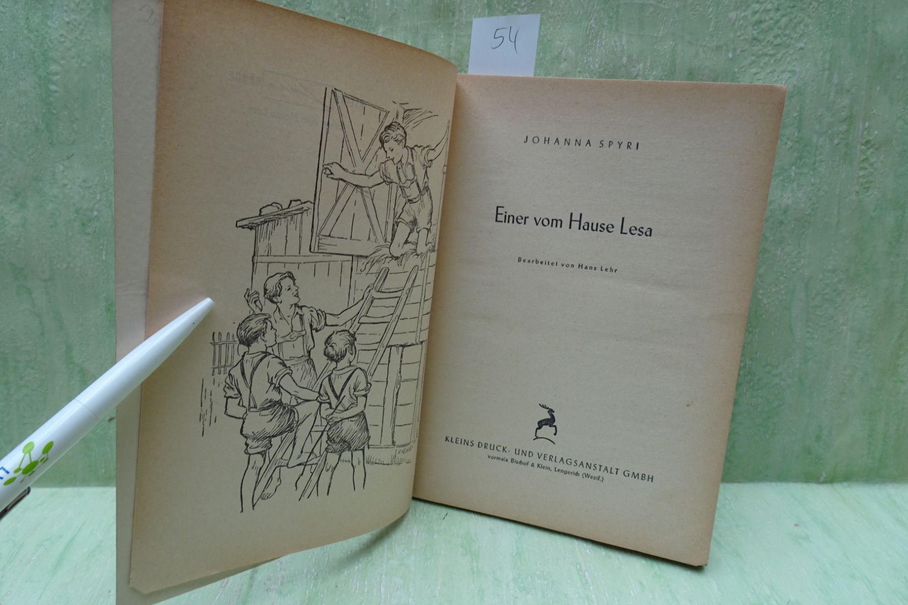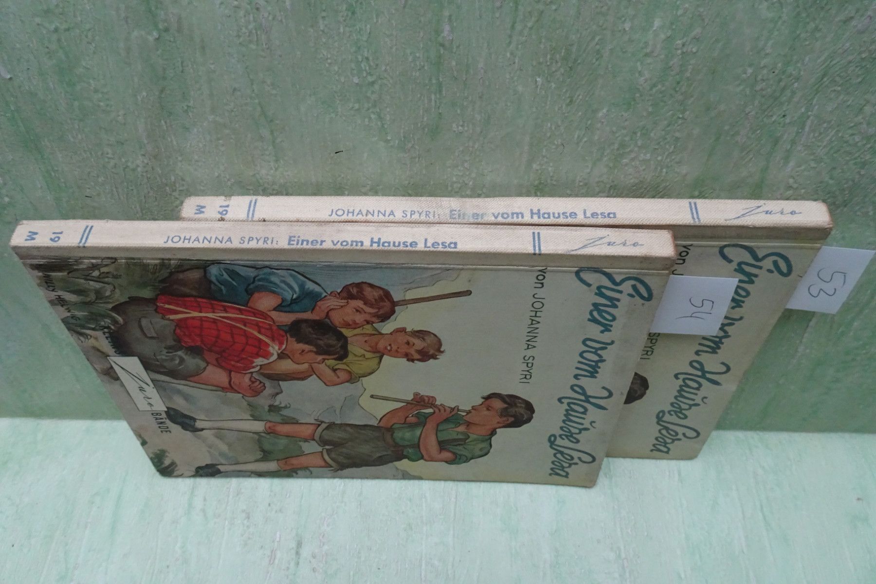 Jugend- & Kinderbücher ... Erinnerungen ..... Johanna Spyri Einer vom Hause Lesa Die Kinder vom Lesahof 53: bearbeitet von Hans Lehr Copyright 1953 Kleins-Druck- und Verlagsanstalt GmbH Titelbild und Textillustrationen W. Helwig Halbleinen , Softcover ab Seite 69 Randfleckig 54: bearbeitet von H