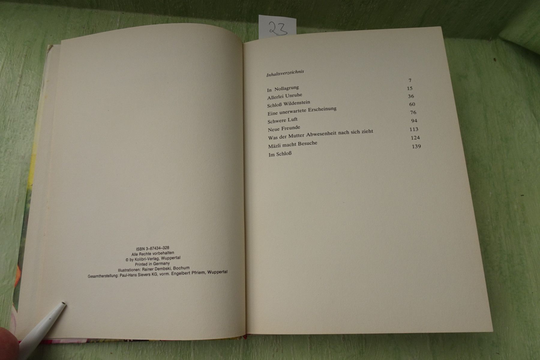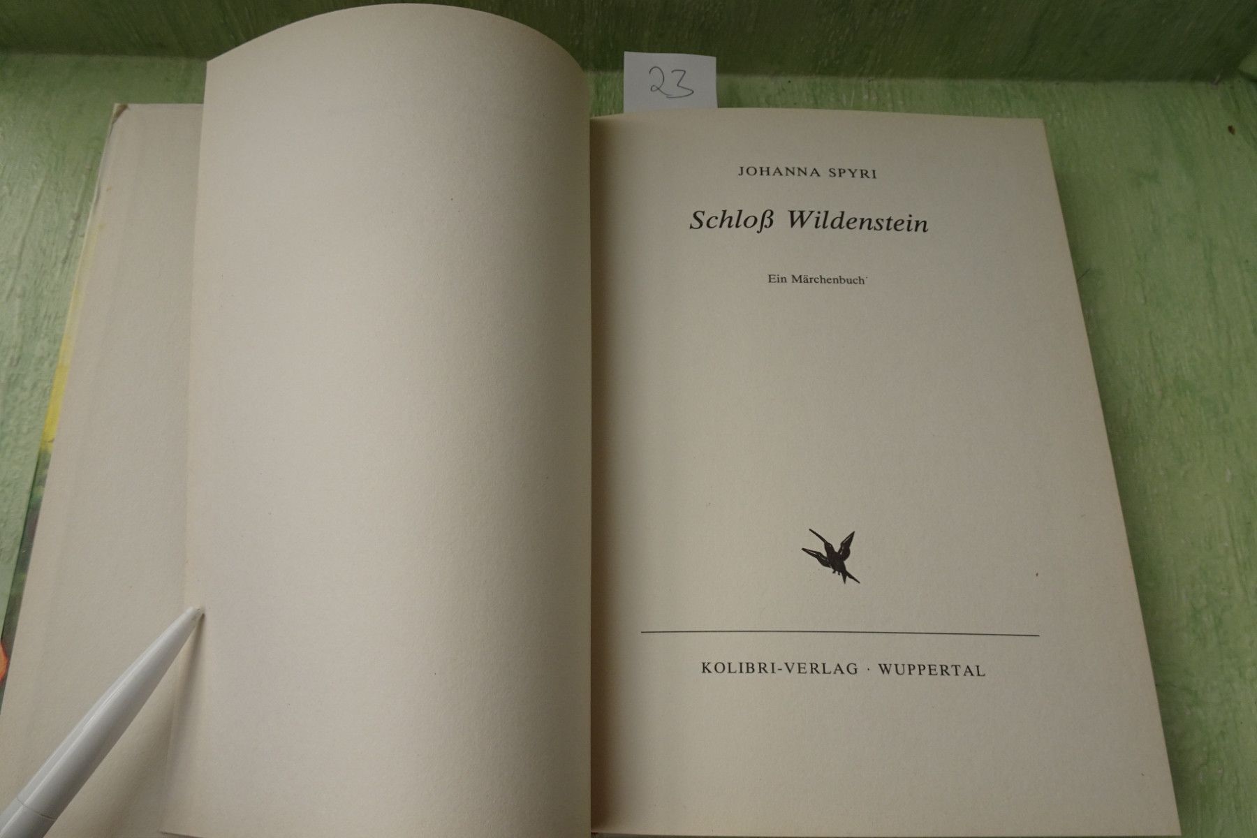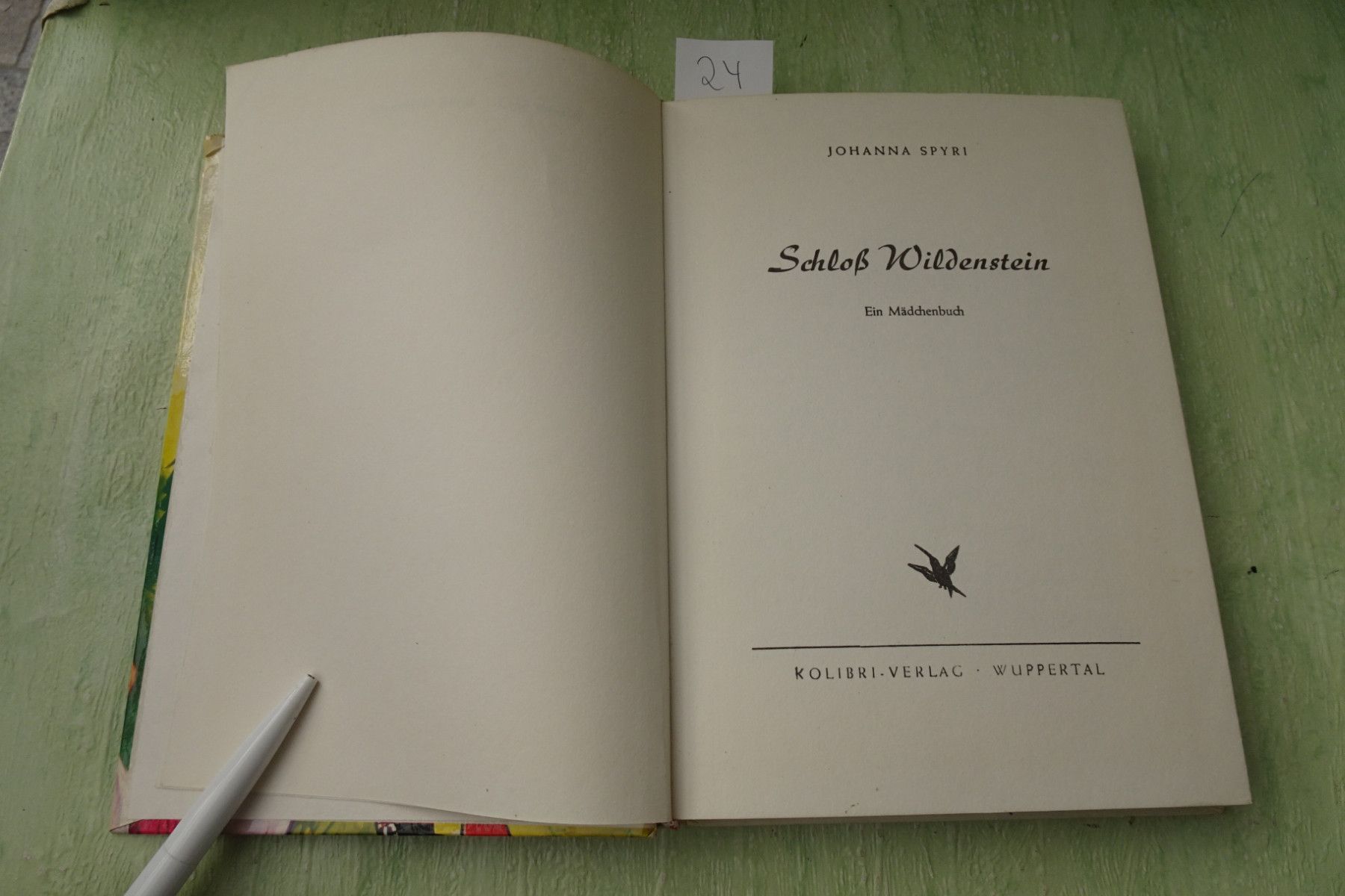 Jugend- & Kinderbücher ... Erinnerungen ..... Johanna Spyri Schloß Wildenstein 23: Ein Märchenbuch ISBN 387434328 Kolibri Verlag Wuppertal oJ Illustrationen Rainer Dembski HC 24: Ein Mädchenbuch Kolibri Verlag , Wuppertal keine weiteren Angaben 112: im Bertelsmann Lesering Lizenz-Ausgabe des Hoc