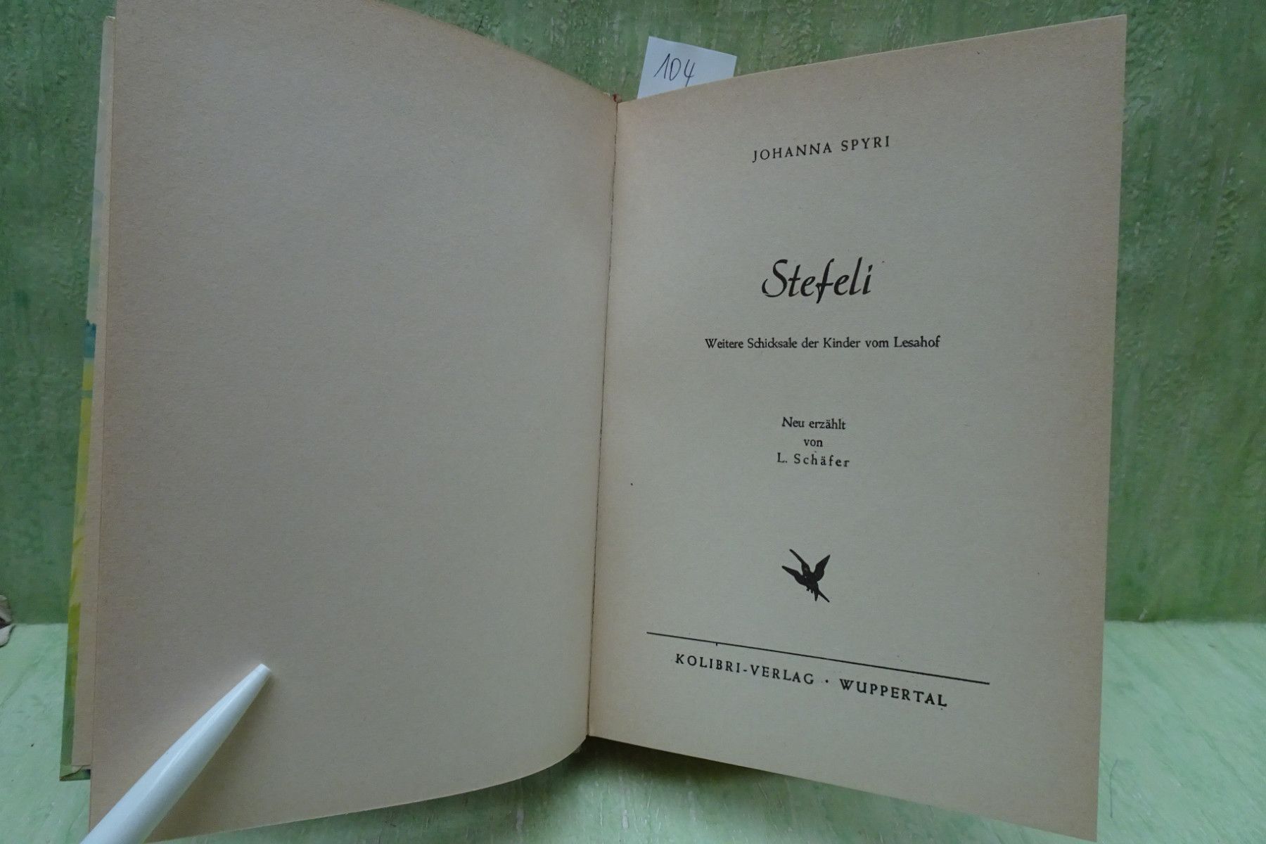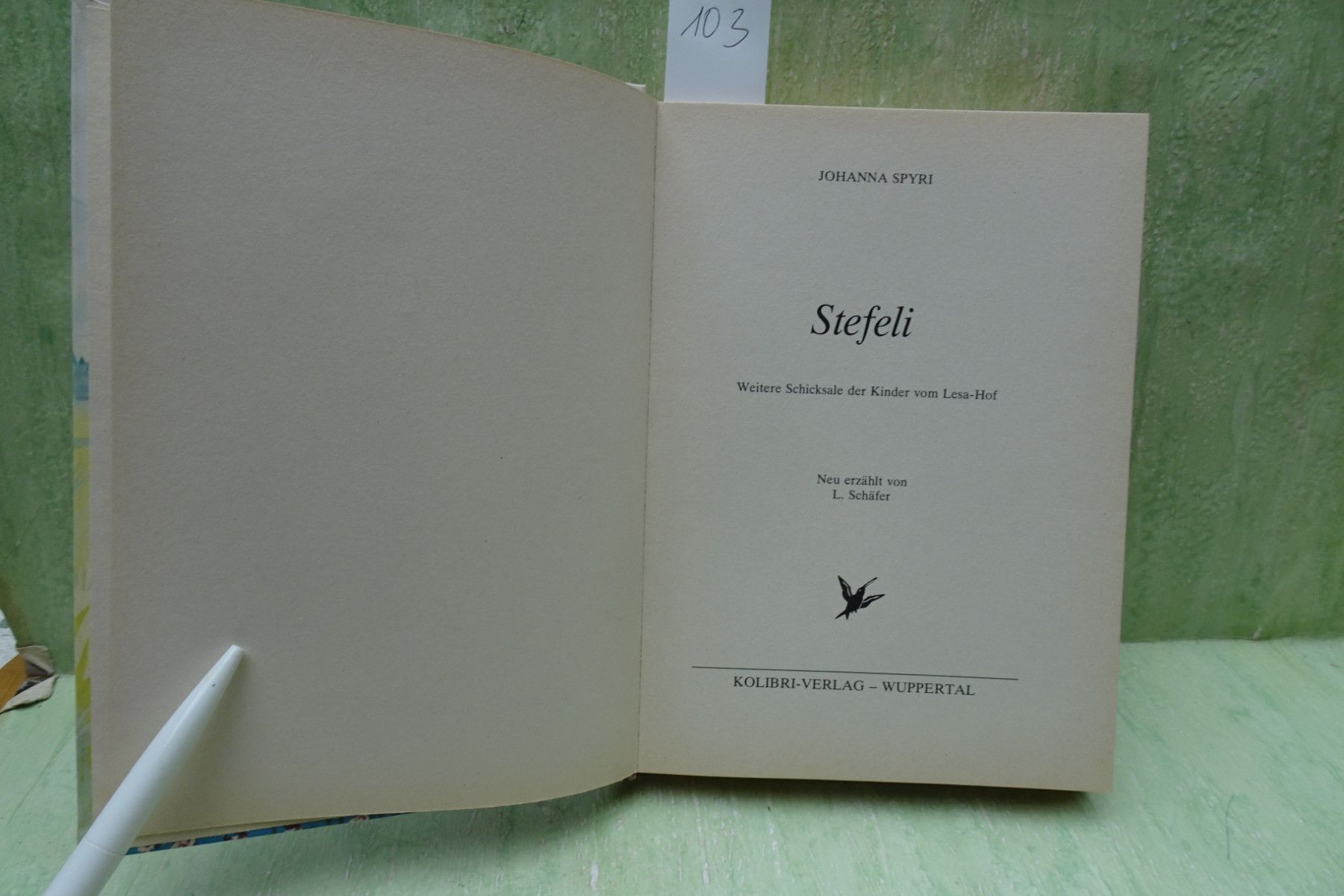 Jugend- & Kinderbücher ... Erinnerungen ..... Johanna Spyri Stefeli weitere Schiksale der Kinder vom Lesahof neu erzählt von L. Schäfer Kolibri Verlag , Wuppertal Abkürzungen: Buchschnitt : BS Buchecken : BE Buchrand : BR Seiten : S Farbkopfschnitt : FK Fadenbindung : FB Hardcover : HC Taschenbu