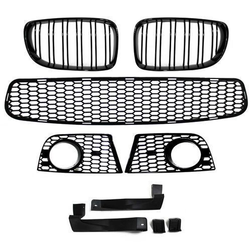JOM Frontstoßstange für BMW E81/E82/E87/E88 2004-2013 Doppelrippen Grill Schwarz