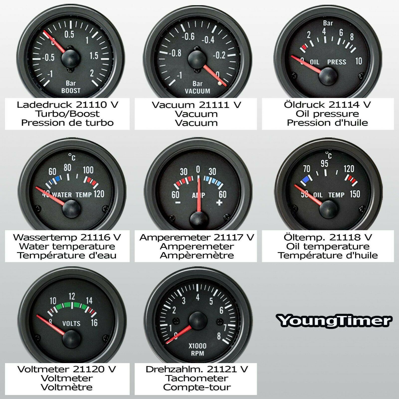Jom Youngtimer ZusatzInstrument 12 Volt Anzeige Instrument 52mm Rallye Schwarz
