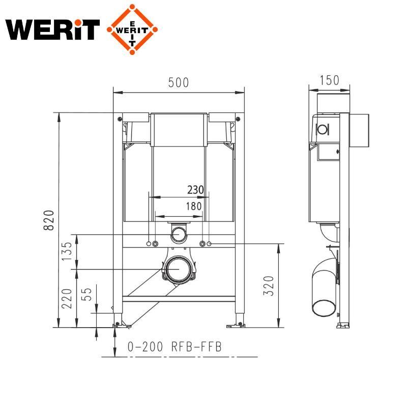 JOMO Tech Einzelelement für Wand-WC, flach, Bauhöhe: 820mm, Betätigung von vorn