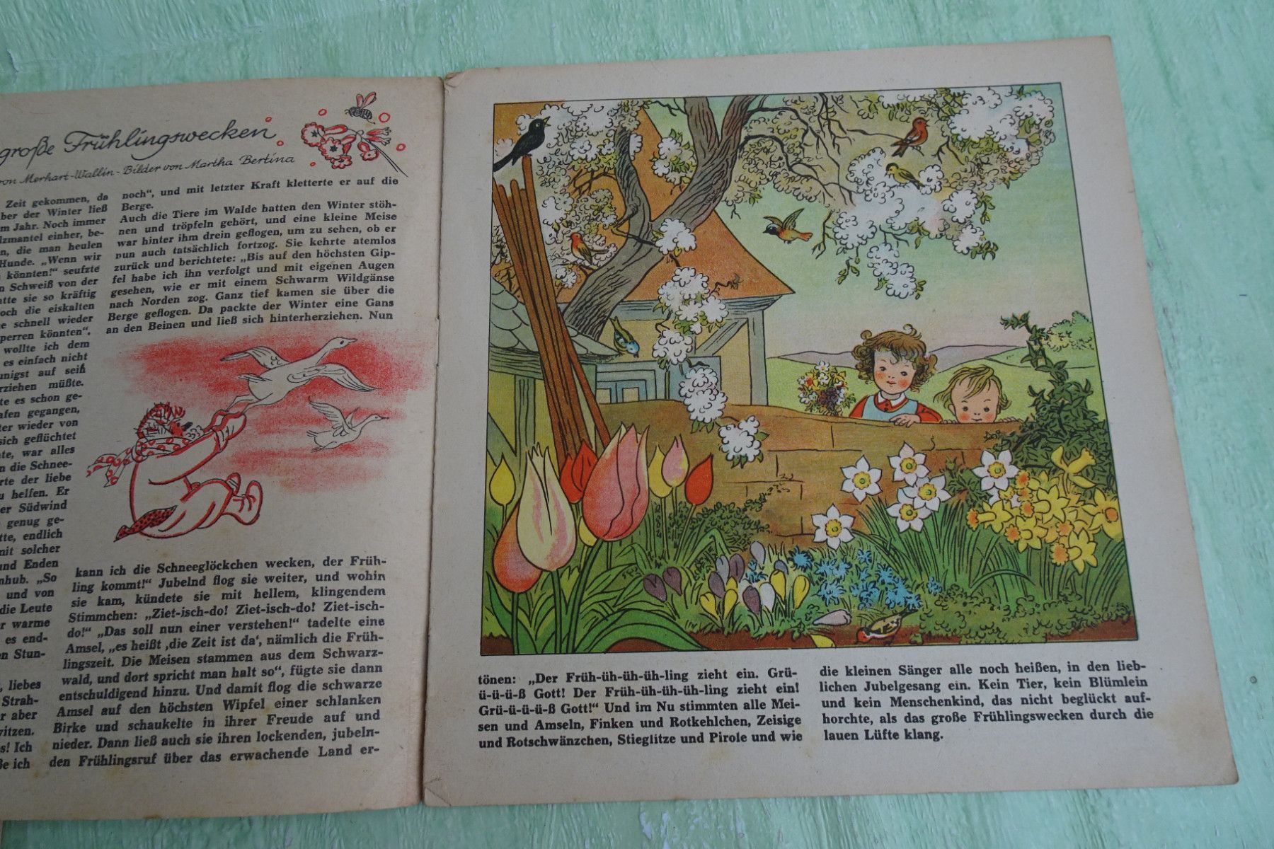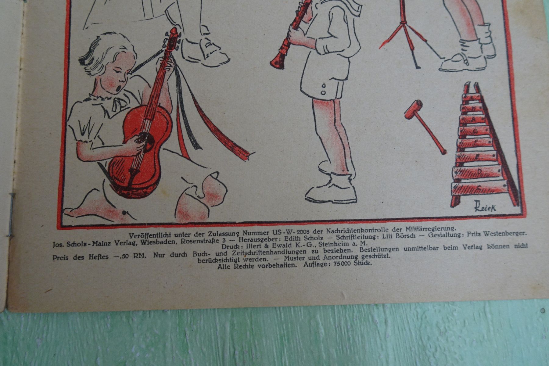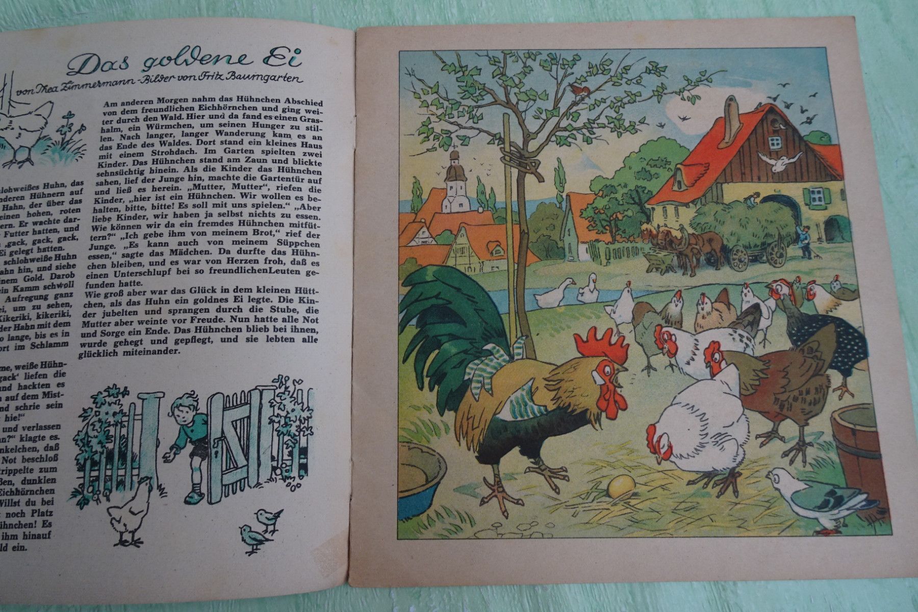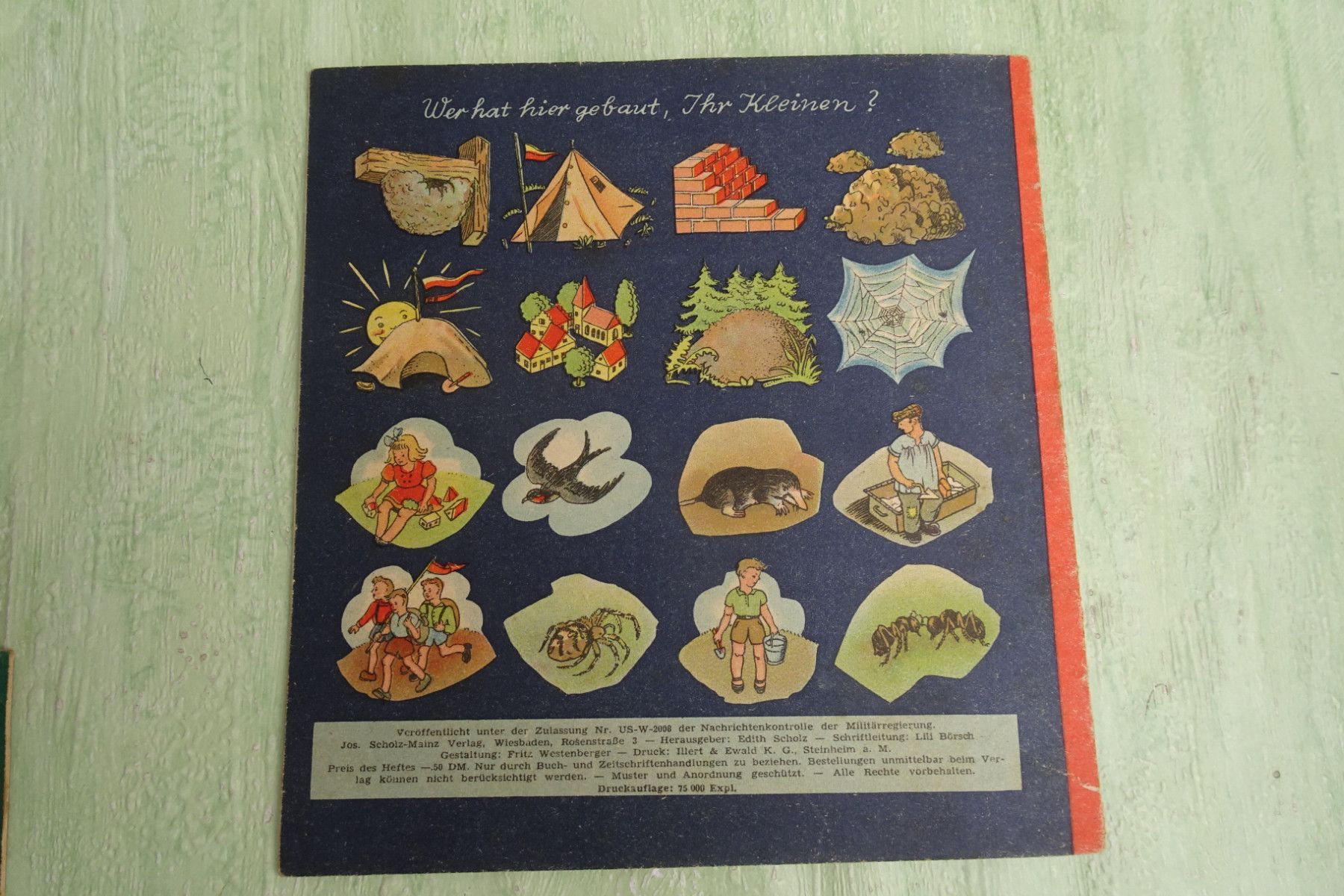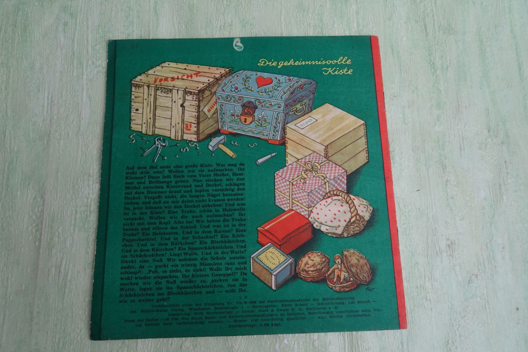 Bilderbücher - Kinderbücher ... Erinnerungen ..... Josef Scholz , Mainz Veröffentlicht unter der Zulassung Nummer US W 2008 der Nachrichtenkontrolle der Militärregierung Heftchen Softcover ca 20,5 x 19,5 cm 10 Seiten Preis des Heftes --,50 RM - Reichsmark 50 Pfg 1 2 DM Heft 7 Das große Frühlingsweck... Mehr