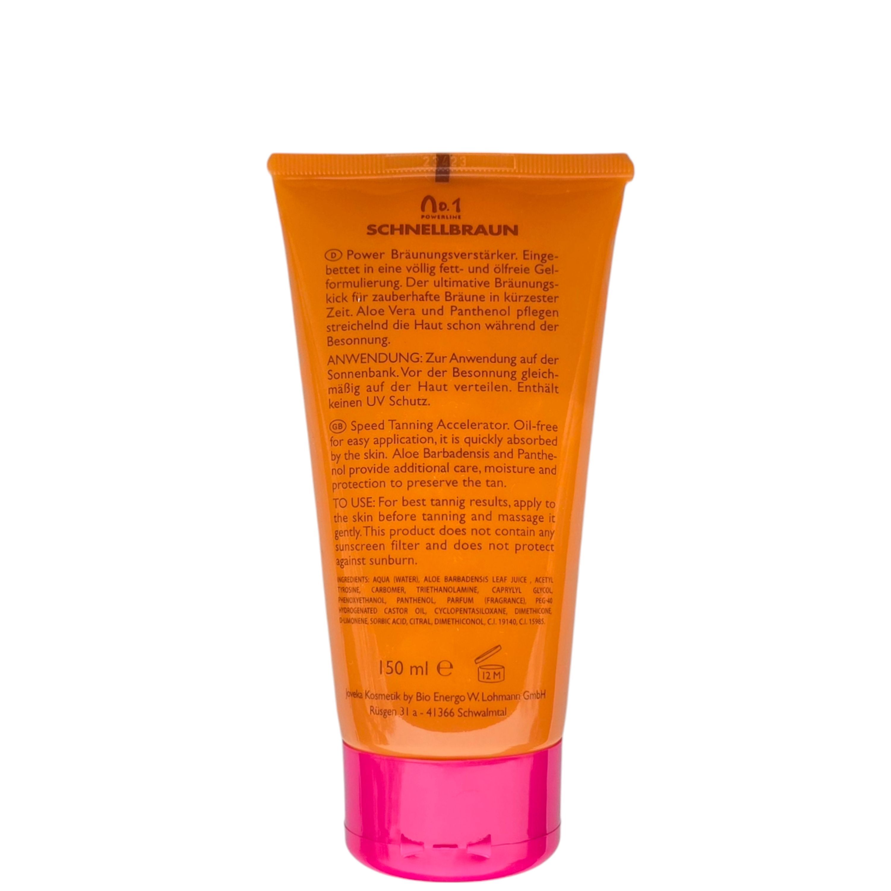 Bräunungsintensivierer mit Aloe Vera und Panthenol. Für Solarium und natürliche Sonne. Für jeden Hauttyp und zur täglichen Pflege geeignet. Völlig Fett und Ölfrei. Enthält keinen Sonnenschutz! Ohne Selbstbräuner! Duft:Orange Inhalt:3x150ml Inhaltsstoffe: Aqua (Water), Carbomer, Triethanolamine, Capr