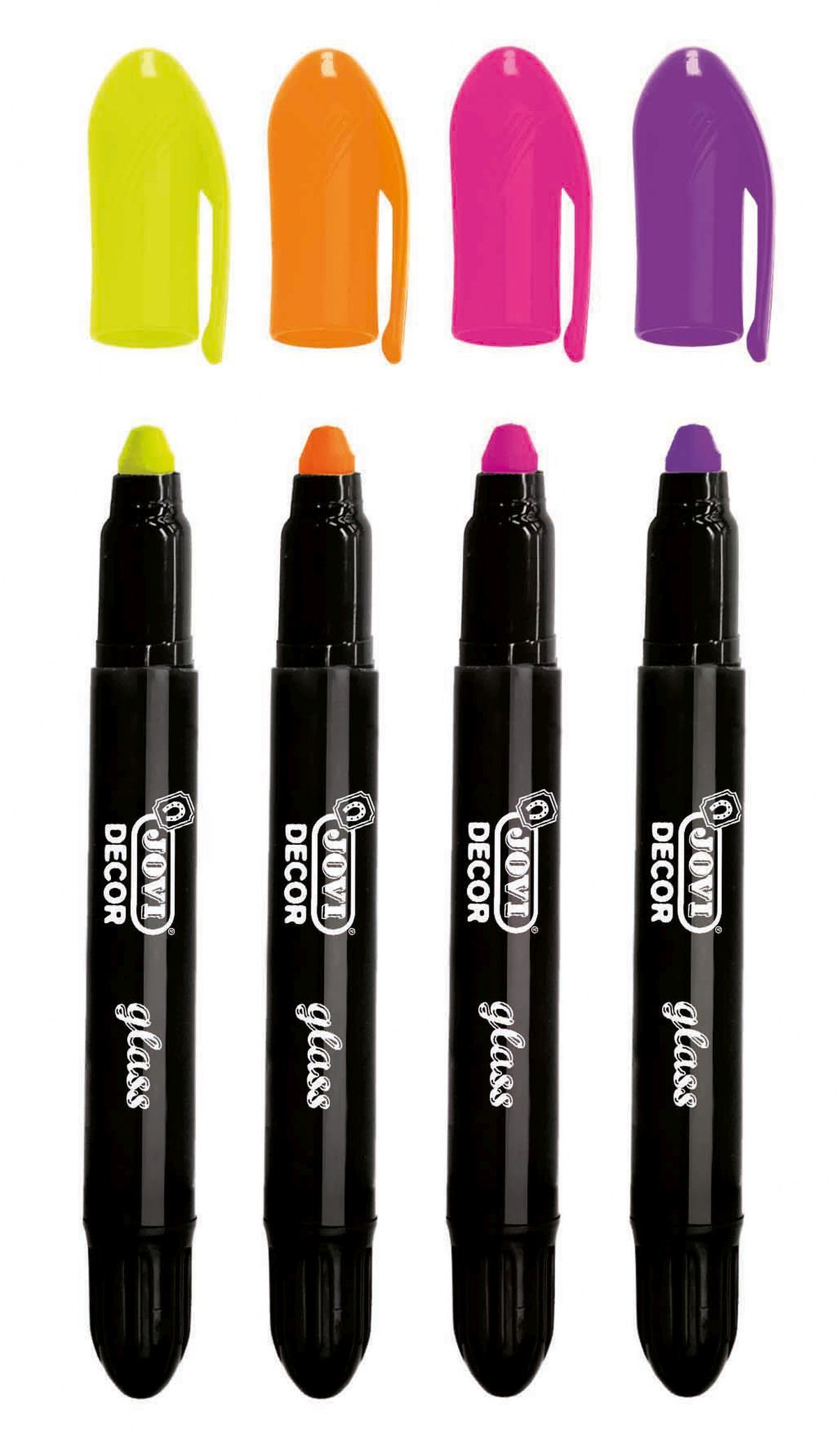 Jovi DECOR glass NEON Wachsmalstifte 4er Schachtel, Neon Farben sortiert