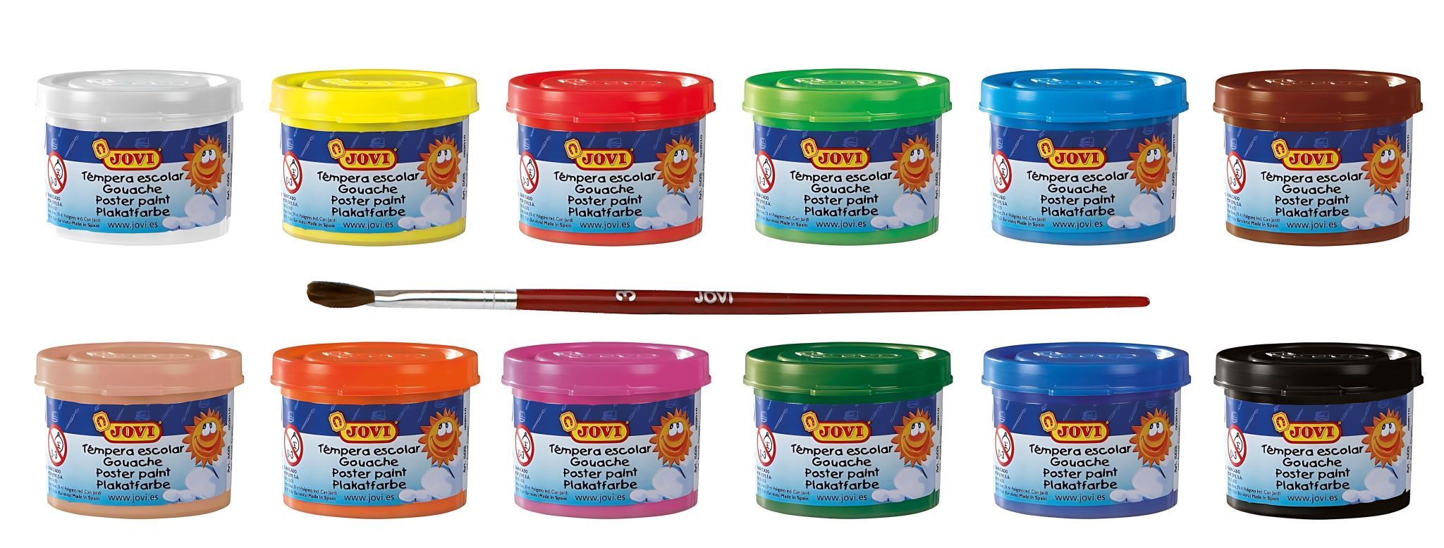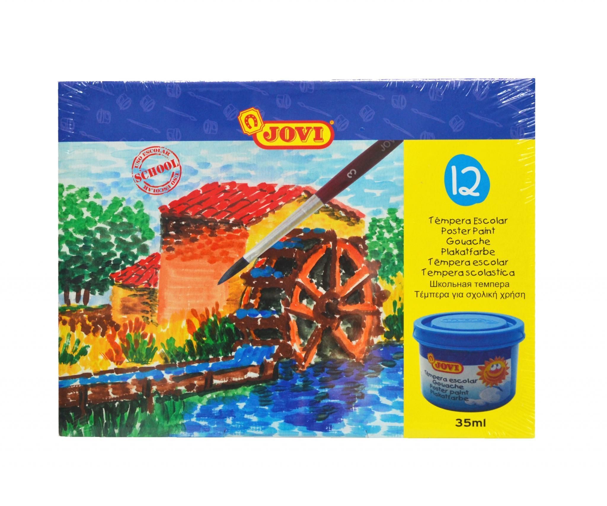 Jovi Flüssige Plakatfarbe 12er Schachtel, je 35ml mit Pinsel