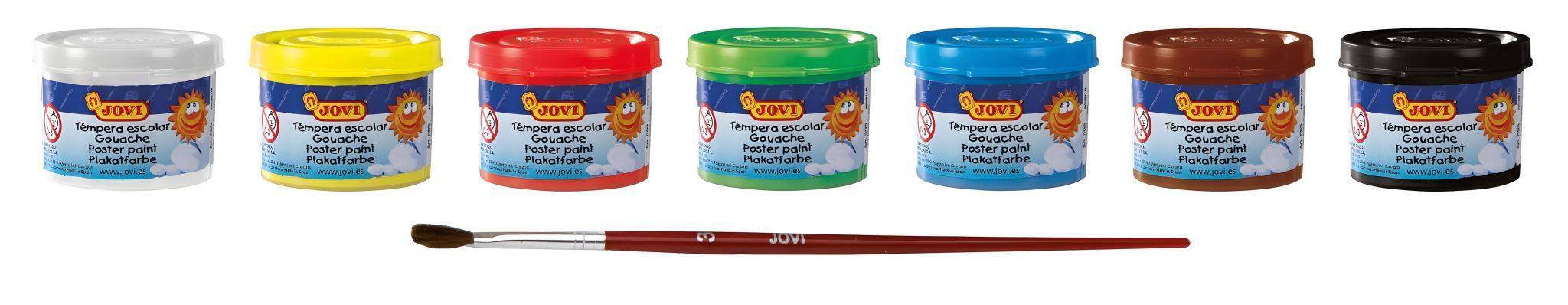 Jovi Flüssige Plakatfarbe 7er Schachtel, je 35ml mit Pinsel