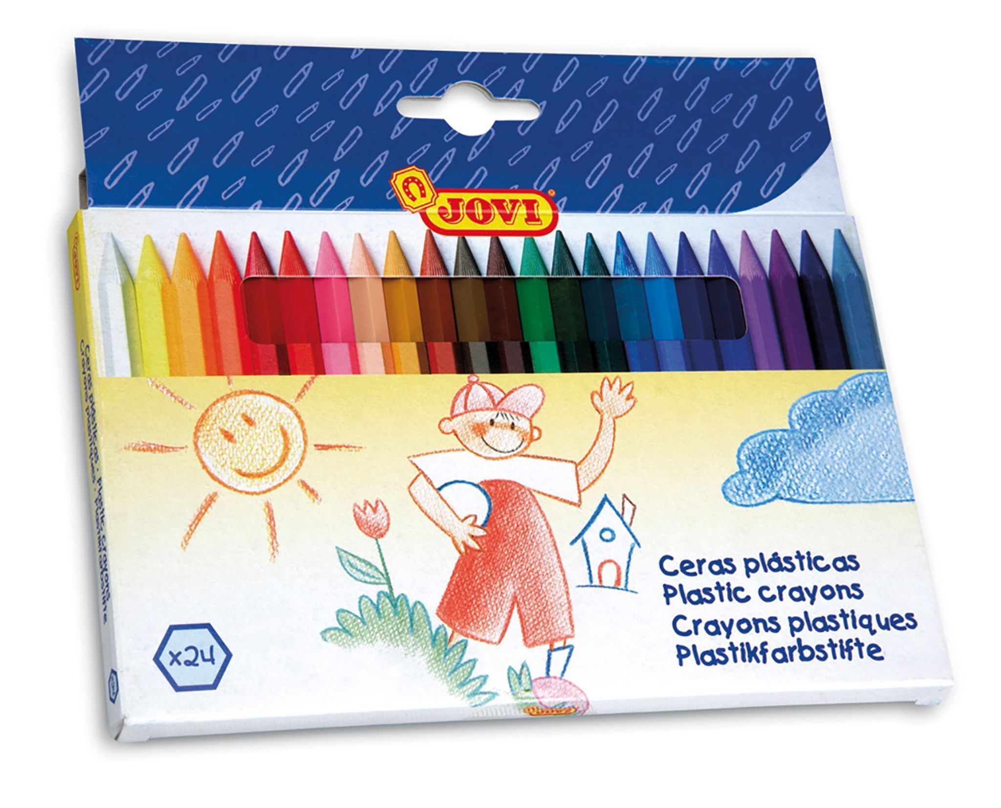 Jovi Plastikfarbstifte sechskant 24er Schachtel, farbig sortiert
