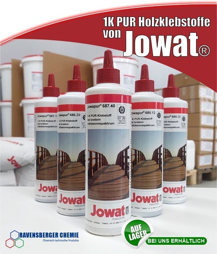 Beschreibung Flüssiger 1K PUR Prepolymer D4-Holzklebstoff von Jowat® für anspruchsvolle Klebungen mit langer Offener Zeit, faserverstärkt und fugenfüllend. Auch für nicht tragende Bauteile geeignet Fugenfüllende Eigenschaften Lange Offene Zeit Witterungsbeständige Klebung (D4) Hohe Wärmebeständigkei