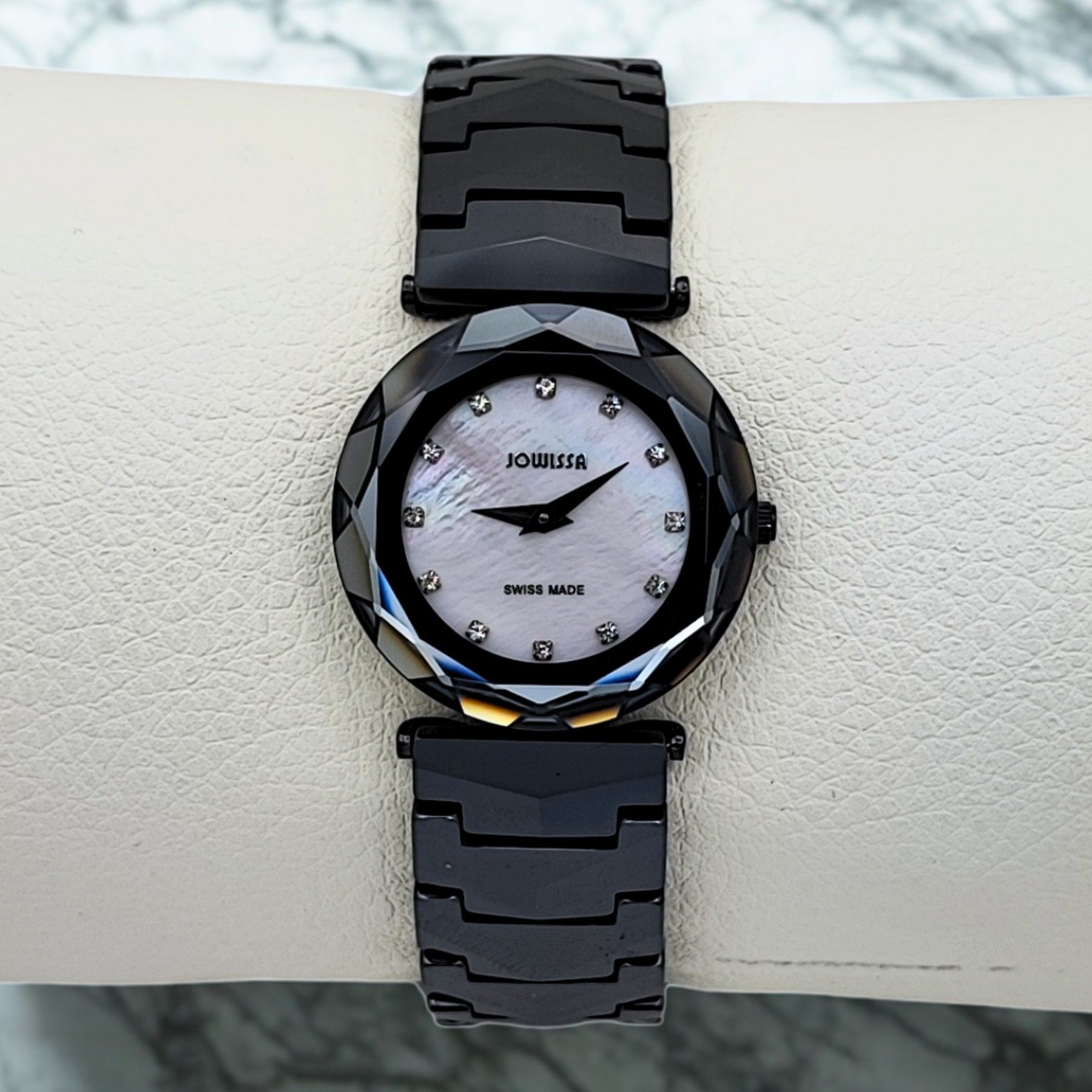 Damenuhr - Keramikband - Jowissa Safira JO.064 – Zeitlose Eleganz in Keramik Die Jowissa Safira JO.064 ist eine stilvolle Damenuhr, die Schweizer Präzision mit exklusivem Design vereint. Das facettierte Gehäuseglas sorgt für funkelnde Lichtreflexe, während das schimmernde Perlmutt-Zifferblatt mit gl