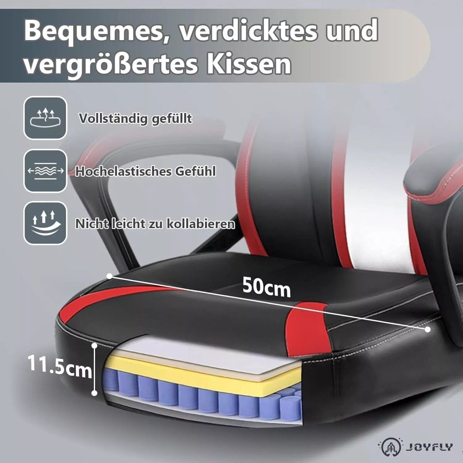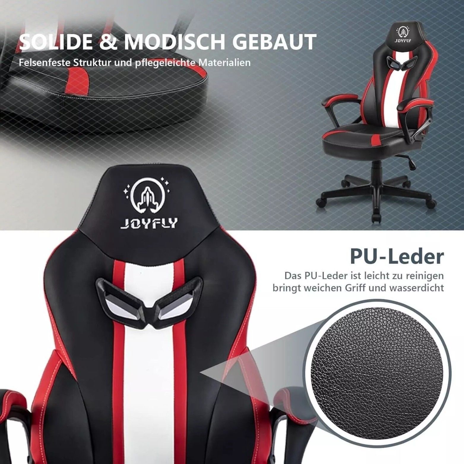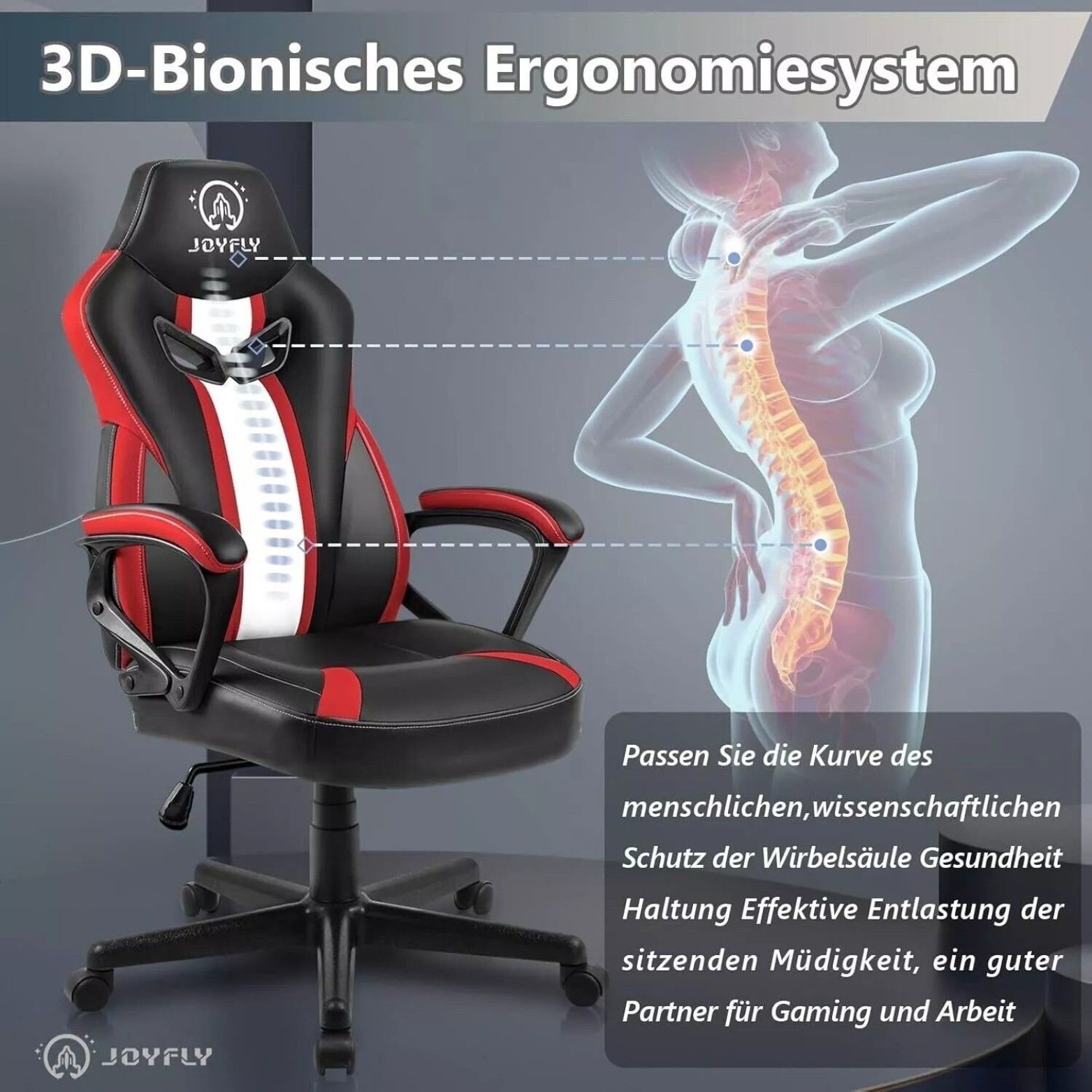 JOYFLY Bürostuhl Ergonomisch Gaming Stuhl E-Sports Racingstil Höhenverstell Rot