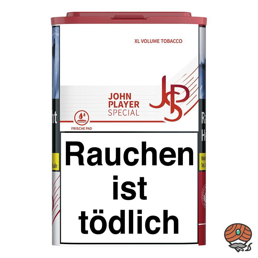 4 x John Player Special Red Rot XL Volumentabak Dose + 1.000 John Player Special King Size Filterhülsen + 2 Sturmfeuerzeuge (nicht wählbar) + 1 Strandaschenbecher (nicht wählbar) + 1 Zigarettenbox ( nicht wählbar) Tabak: John Player Special (JPS) Red XL Volumentabak ist ein ergiebiger Volumentabak,