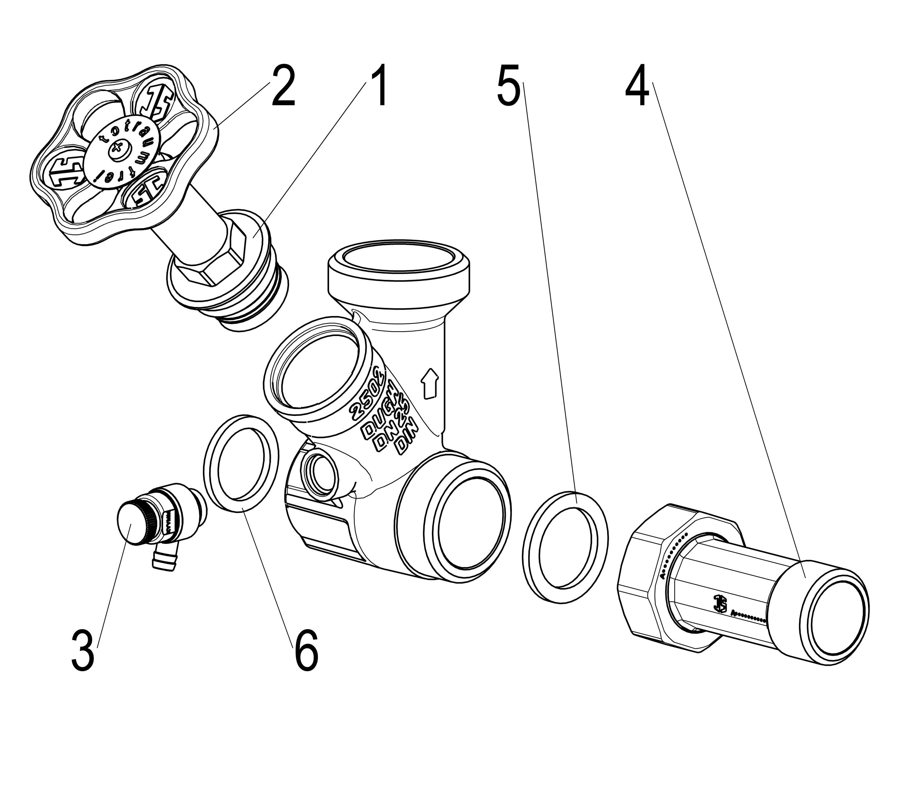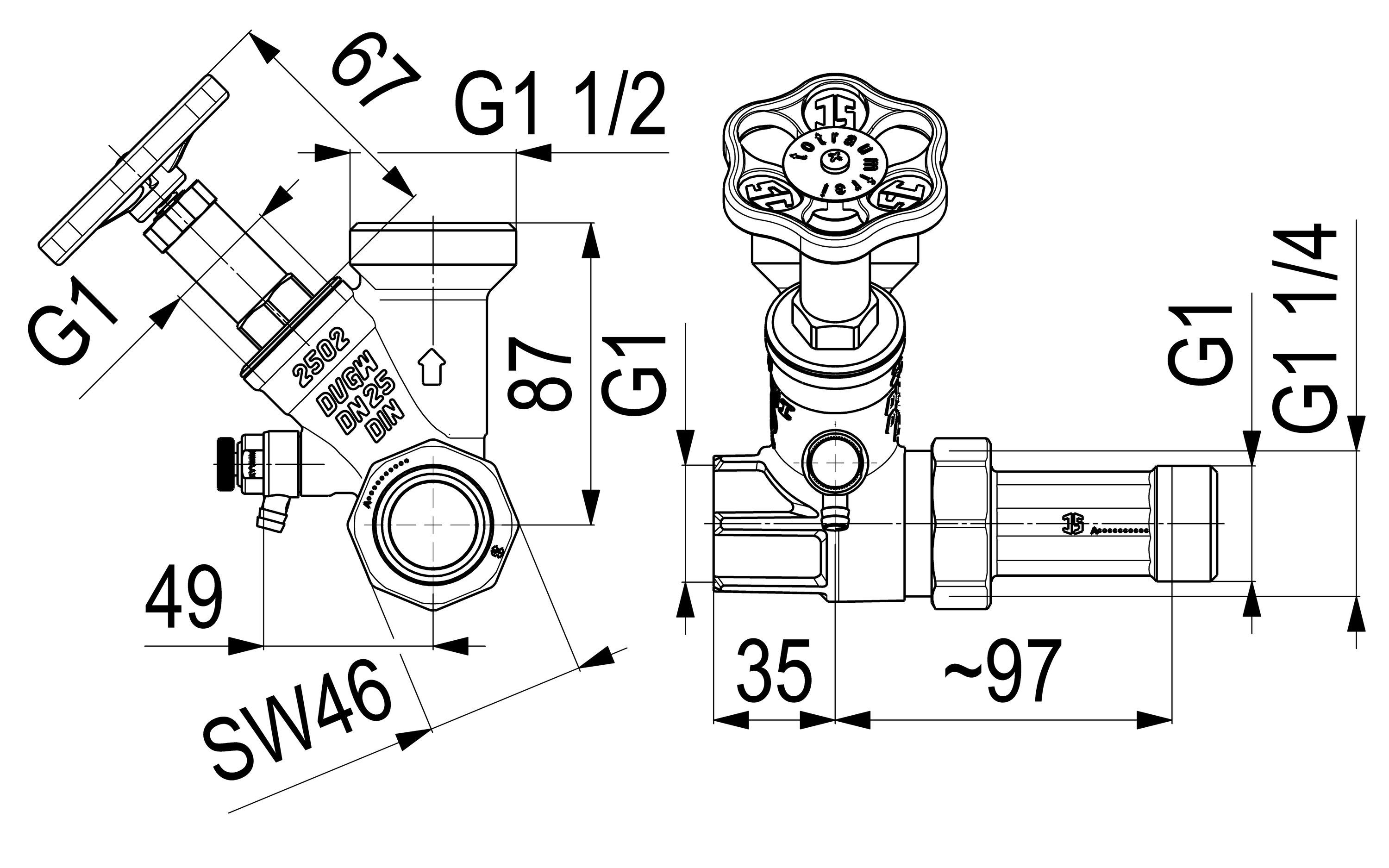 Schlösser Armaturen JS Abzweig-t-ventil, Freistrom N. ST. SP., N25, ING.1", B.A.1 1/2"