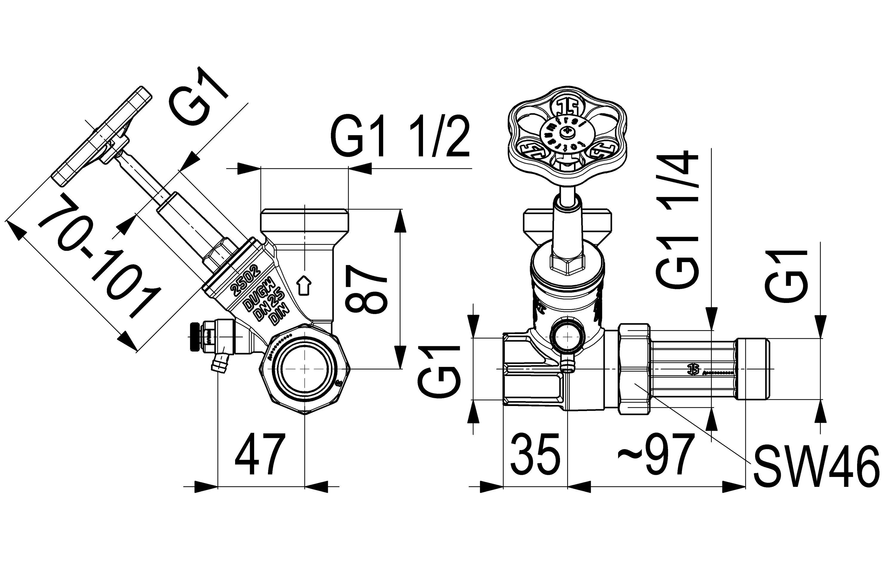 Schlösser Armaturen JS Abzweig-t-ventil, Freistrom ST. SP., N25, ING. 1", B.A. 1 1/2"