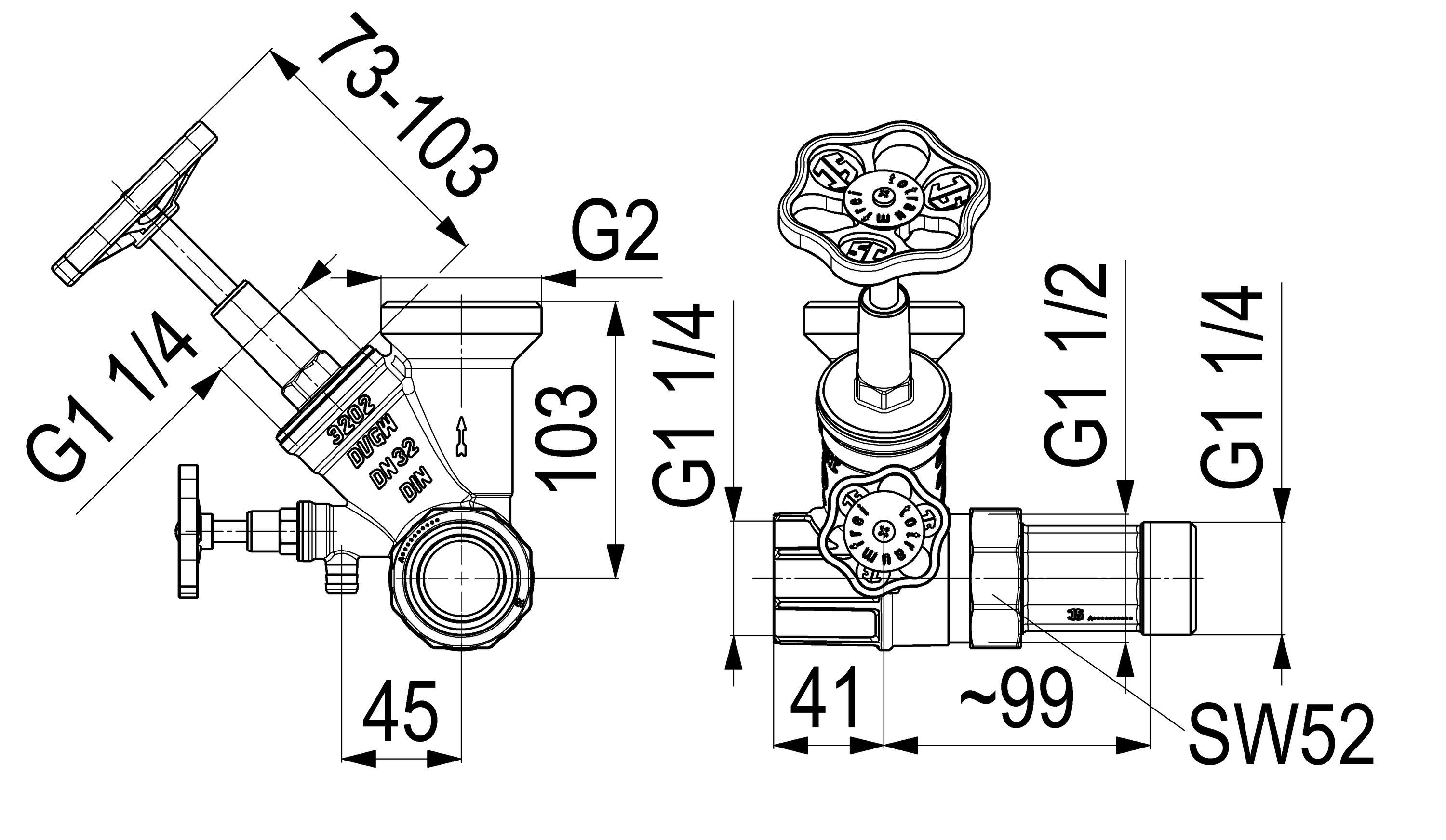 Schlösser Armaturen JS Abzweig-t-ventil, Freistrom ST. SP., N32, ING. 1 1/4", B.A. 2"
