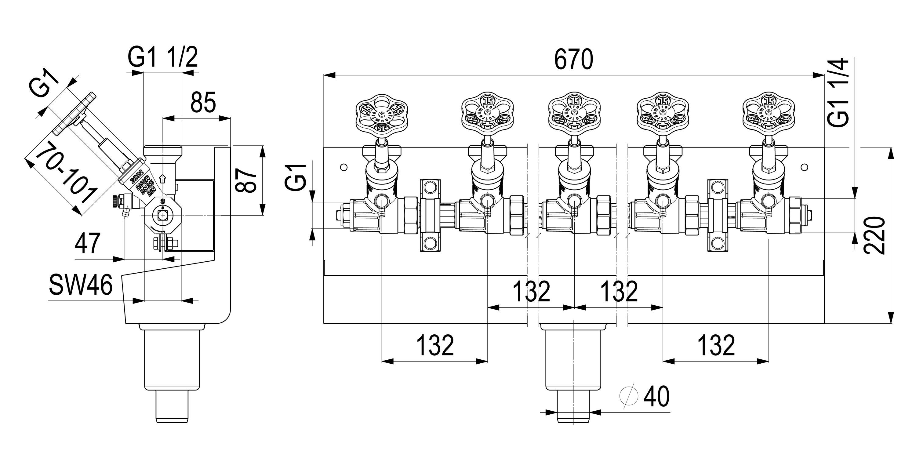 Schlösser Armaturen JS ATV-STATION, Steigende Spindel 5-FACH, N25, ING. 1", B.A. 1 1/2"