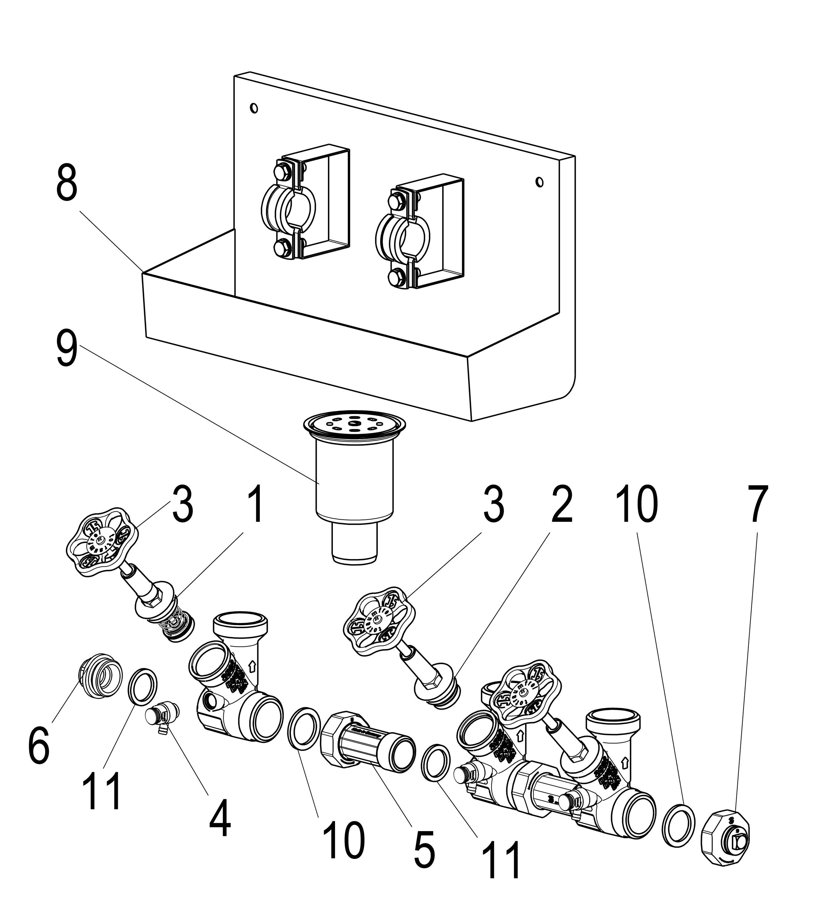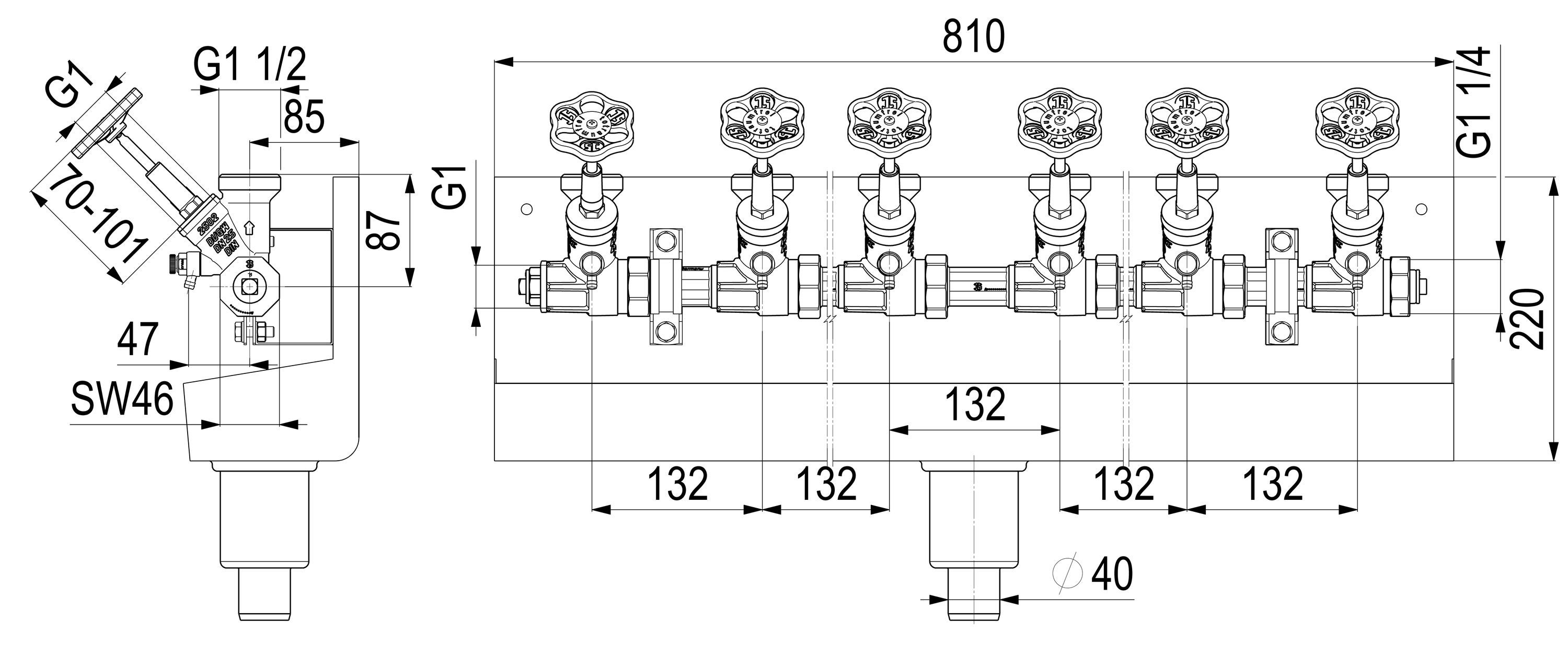 Schlösser Armaturen JS ATV-STATION, Steigende Spindel 6-FACH, N25, ING. 1", B.A. 1 1/2"