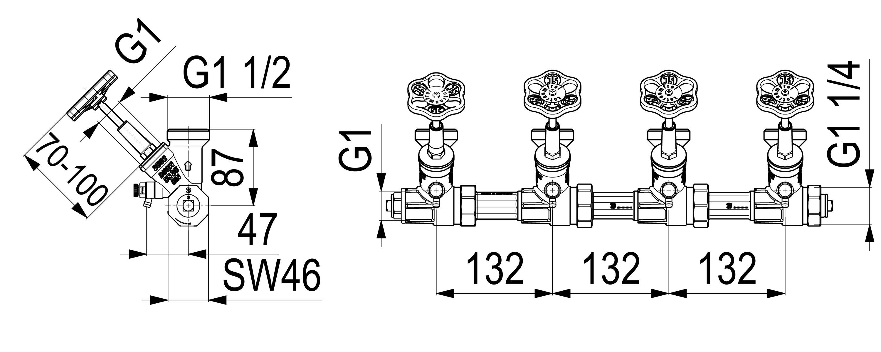 Schlösser Armaturen JS ATV-VERTEILER, STEIG. Spindel 4-FACH, N25, ING. 1", B.A. 1 1/2"
