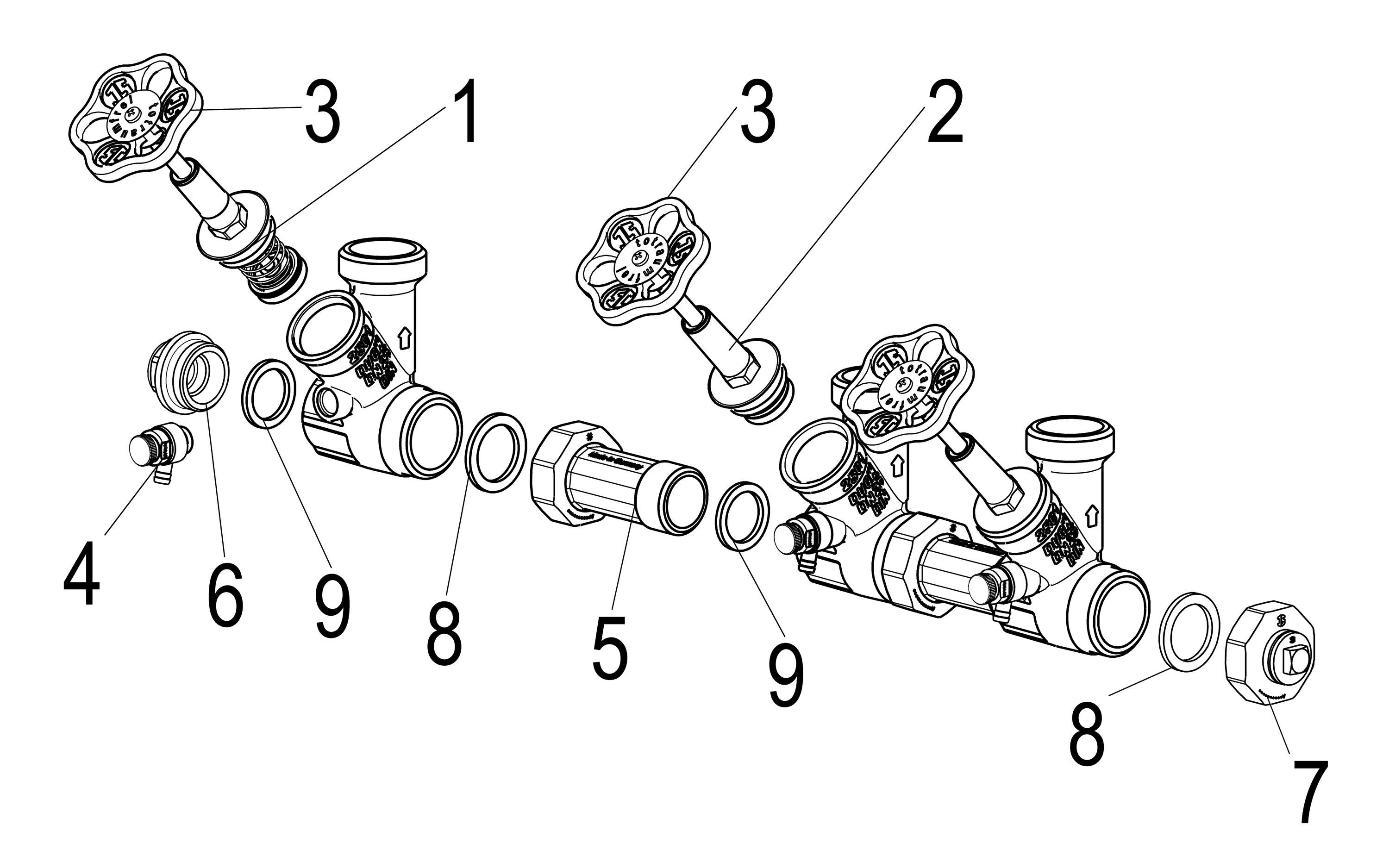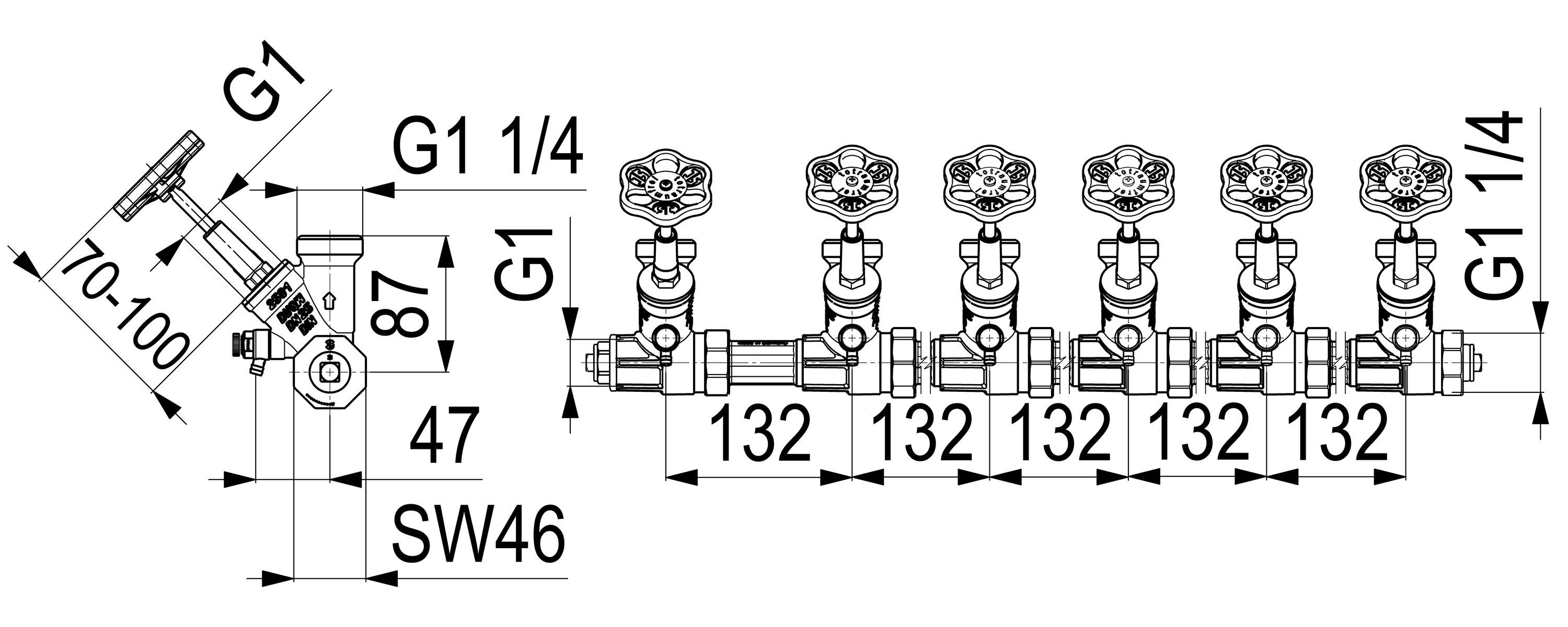 Schlösser Armaturen JS ATV-VERTEILER, STEIG. Spindel 6-FACH, N25, ING. 1", B.A. 1 1/4"