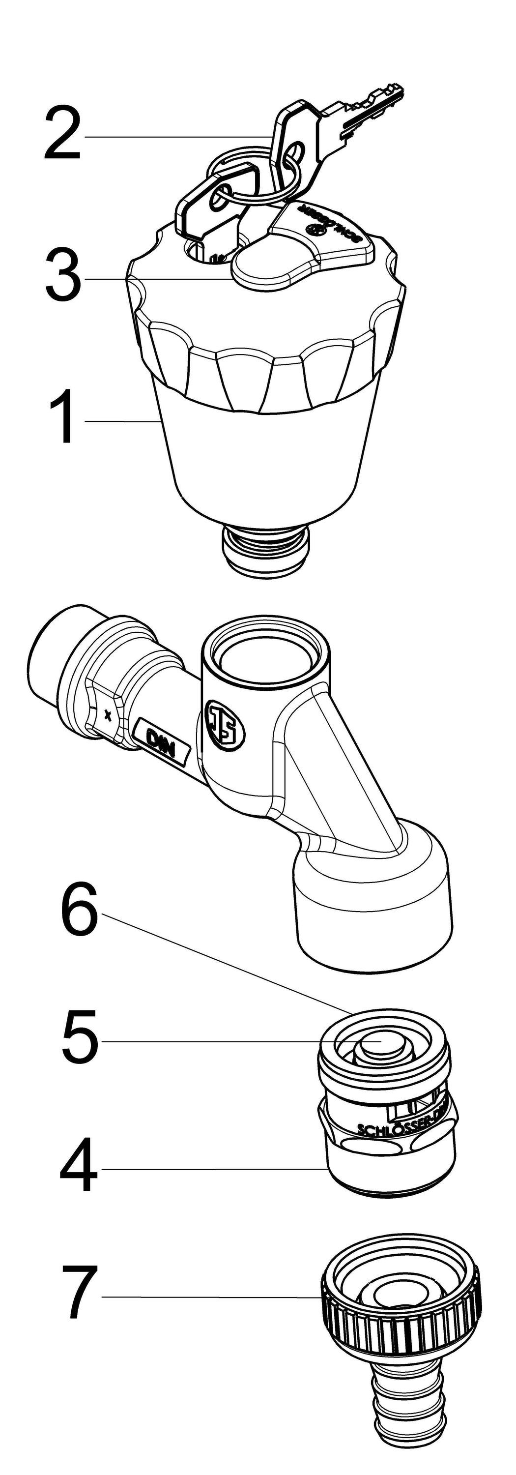 Schlösser Armaturen JS Auslaufventil, Bschliessbar M. RB, V, V, N15, OL. CHR, R: R/SCHW